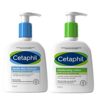 This Cetaphil pairing offers a comprehensive daily routine formulated for normal to dry, sensitive skin types. The set includes the Gentle Skin Cleanser and the Moisturising Lotion, both featuring dermatologist-recommended standards.