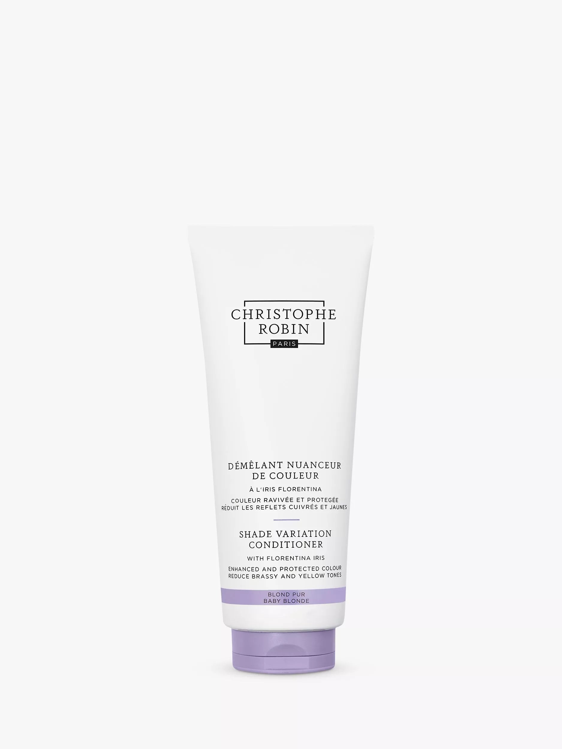 Florentina iris and a blend of violet pigments colour-corrects unwanted brassy and yellow tones while magnolia bark, rich in omega-9, helps protect and nurture tresses.