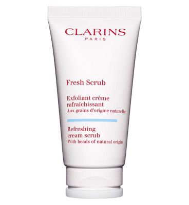 Clarins Fresh Scrub 50ml offers essential weekly care for thirsty skin requiring immediate refreshment. This effective cream exfoliant uses natural origin beads to gently polish the surface. The scrub removes dull impurities and dead skin cells, refining texture noticeably for a soft feel.