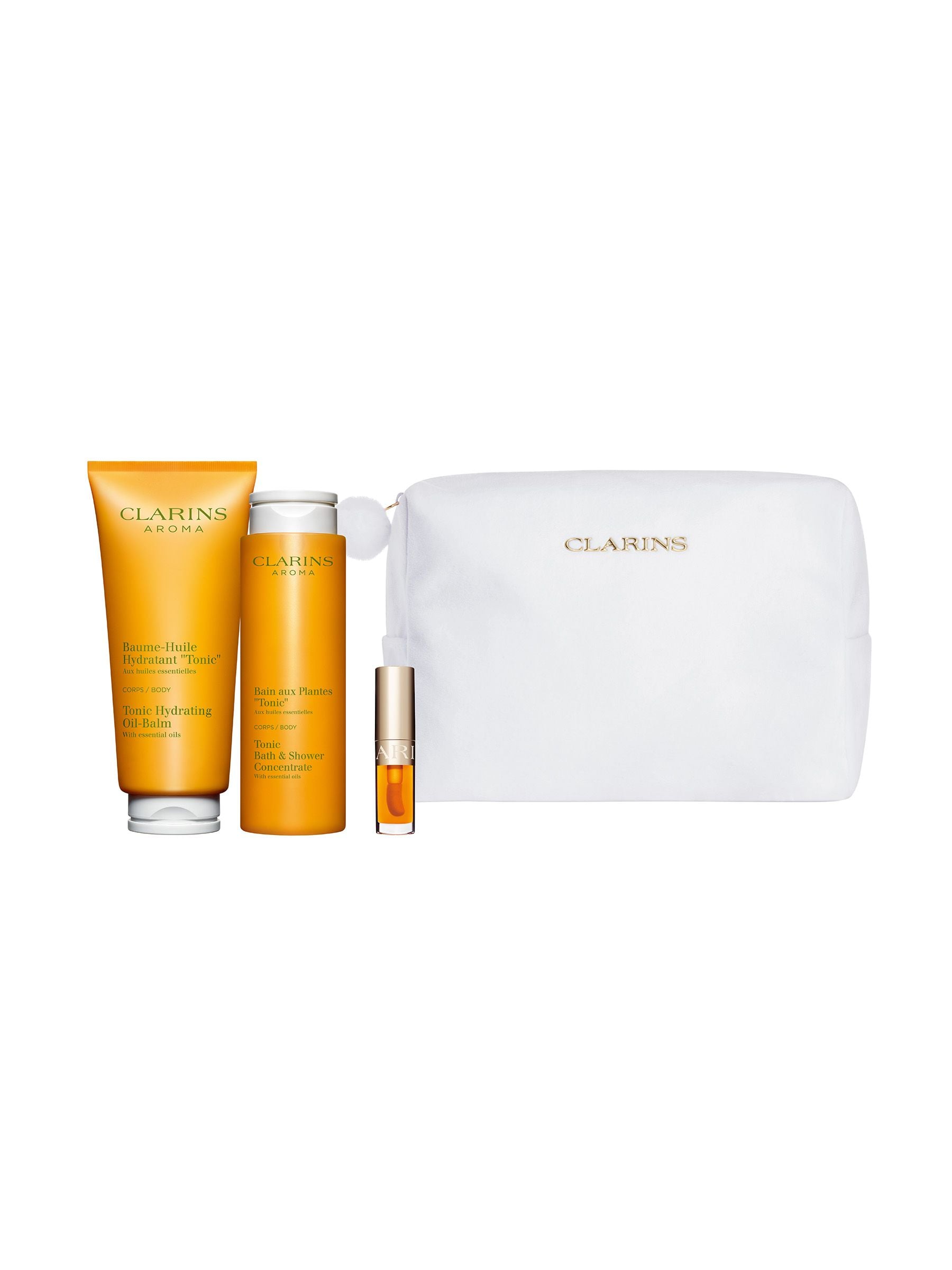 Next level spa-like glow at home!The Tonic Ritual Collection, worth over £68, nourishes and tones your skin with indulgent essential oils; featuring a FULL SIZE Tonic Hydrating Oil-Balm (200ml), a FULL SIZE Tonic Bath & Shower Concentrate (200ml), and a mini Lip Comfort Oil in the shade 01 Honey.