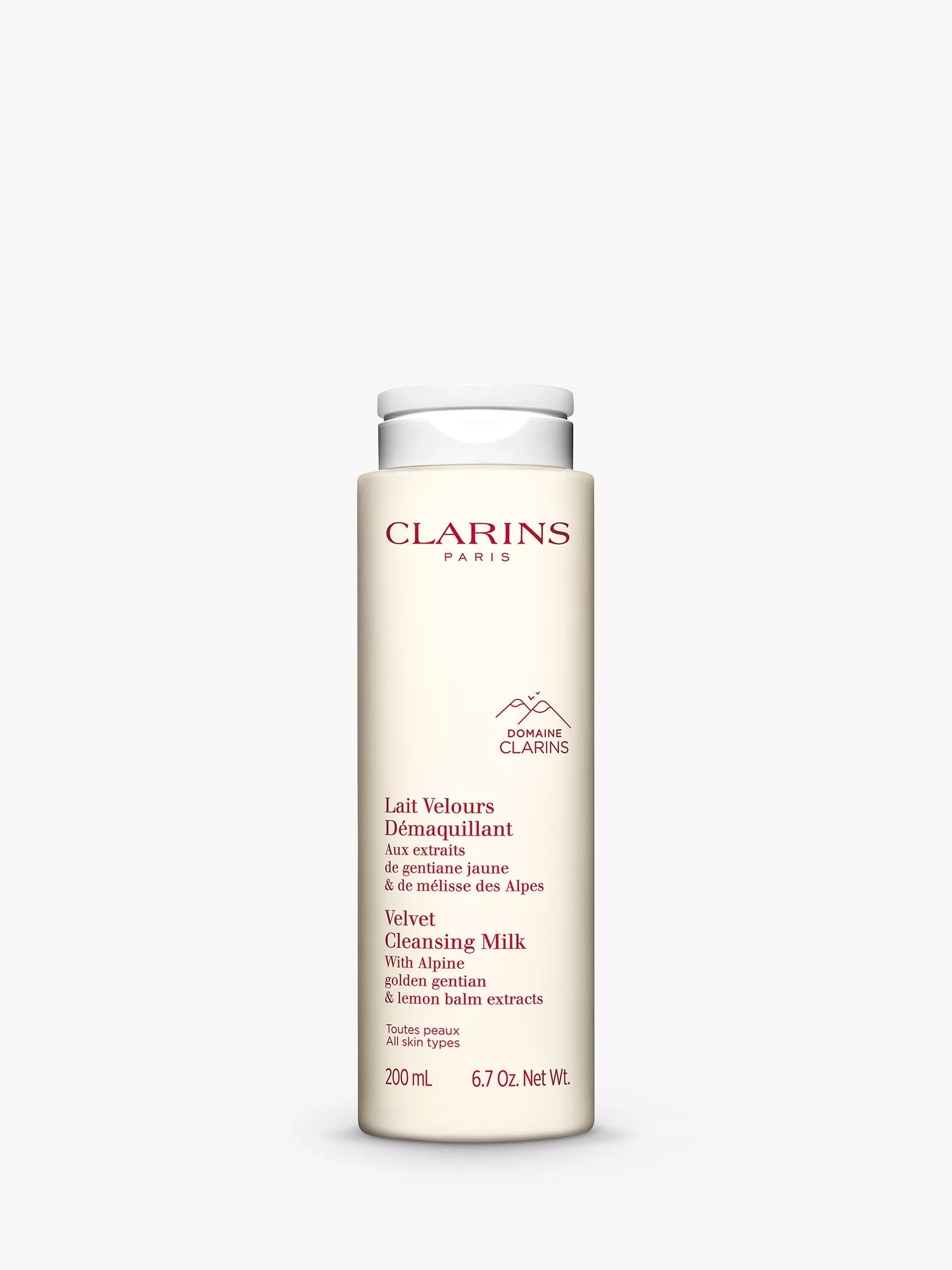 Indulge in the luxurious feel of Clarins Velvet Cleansing Milk, a gentle cleanser perfect for removing light makeup. This creamy milk leaves skin feeling silky soft and comfortable, thanks to its unique formula.