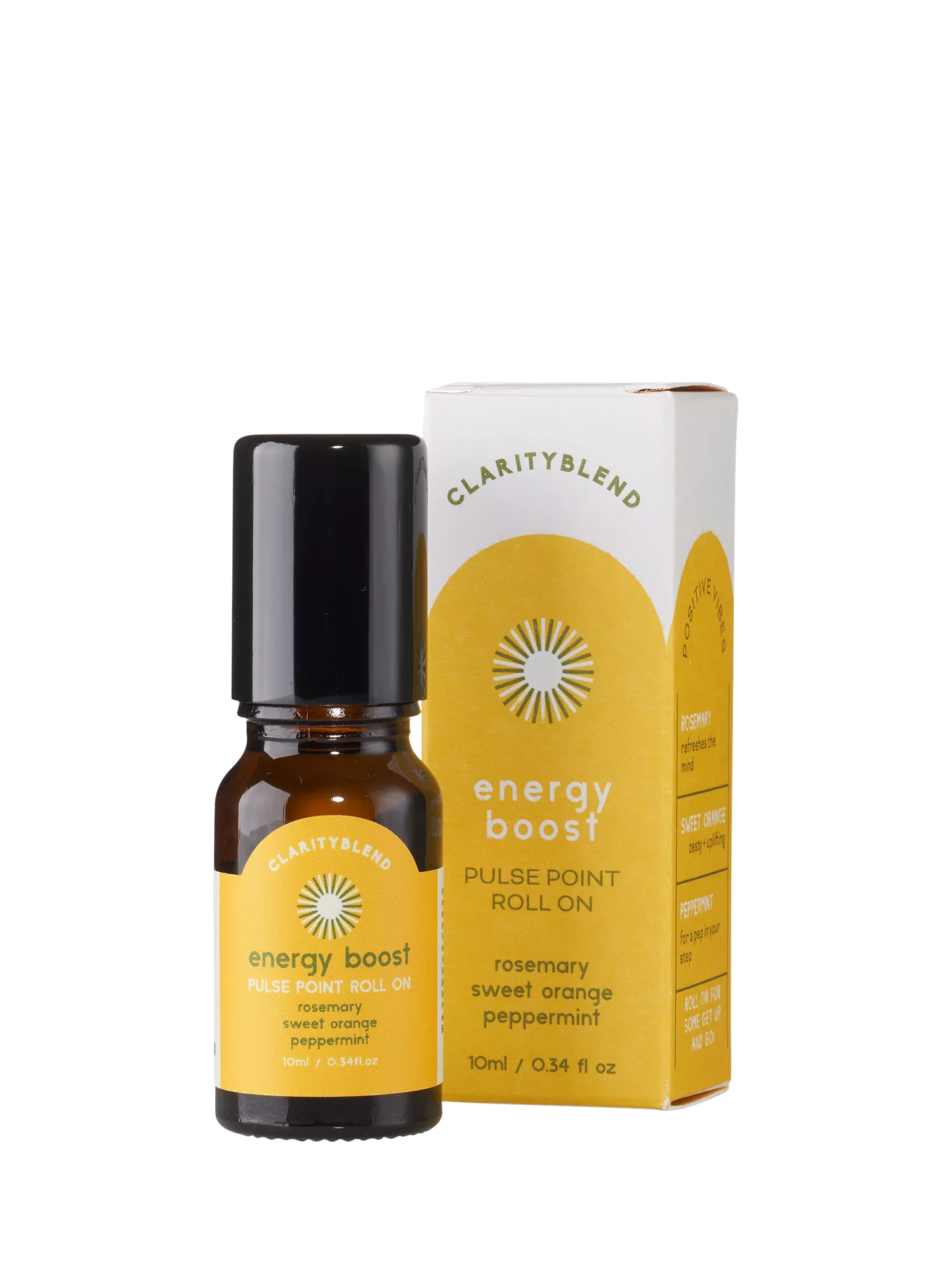 Our Energy Boost Pulse Points Roll On is a mood-boosting tonic packed with positivity. This robust fusion of rosemary, sweet orange and peppermint invigorates and revives, leaving your senses stimulated and your mind clear.