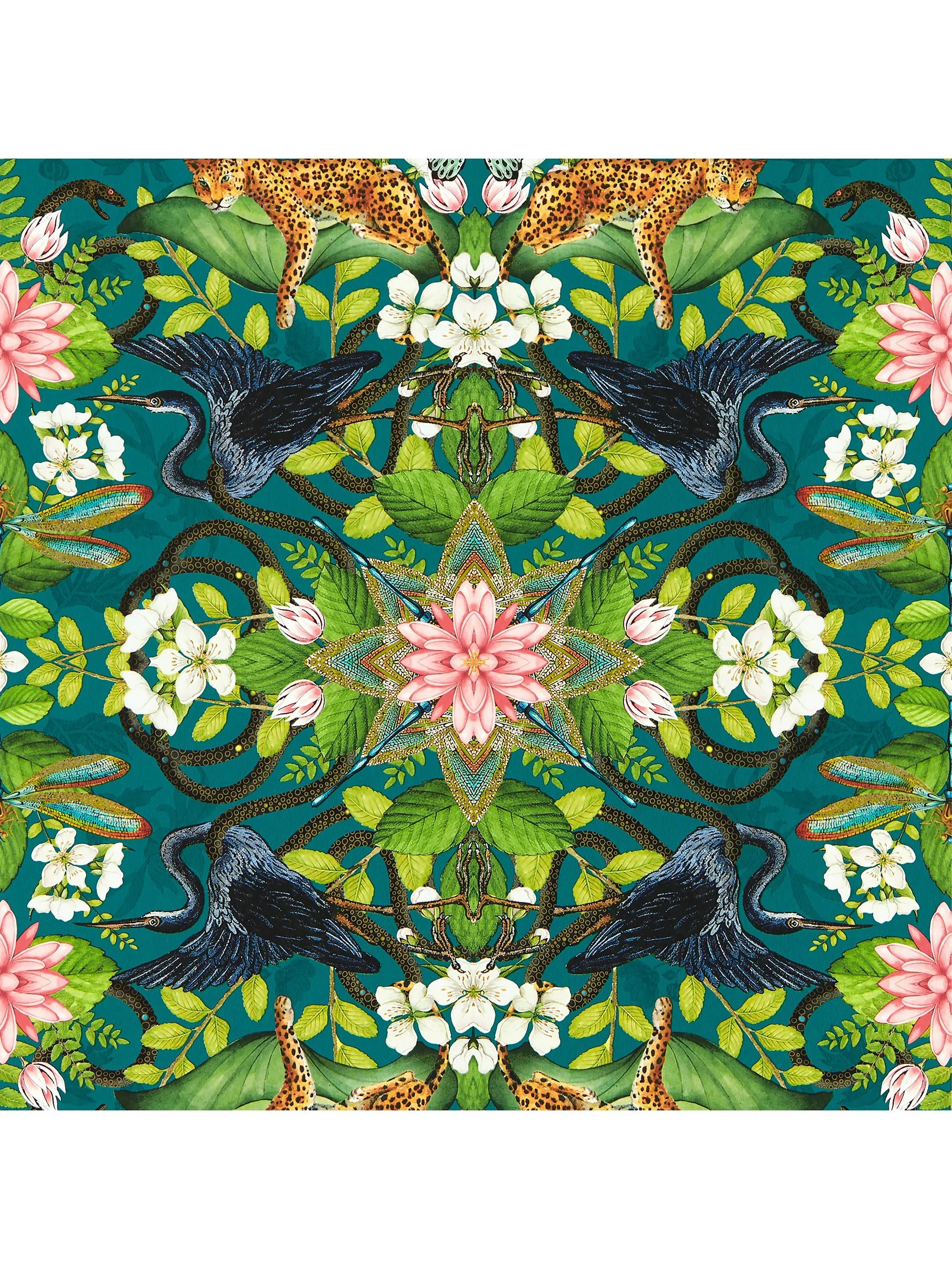 From the Amazon basin's tropical heat, to the humid jungles of Vietnam, harness the spirit of wanderlust and discover exotic, uncharted territories. Celebrating the world s most unusual flora and fauna, make a statement with this bold, kaleidoscopic wallpaper as it encounters butterflies, birds, leopards and snakes hidden amongst unexpected patterns.None