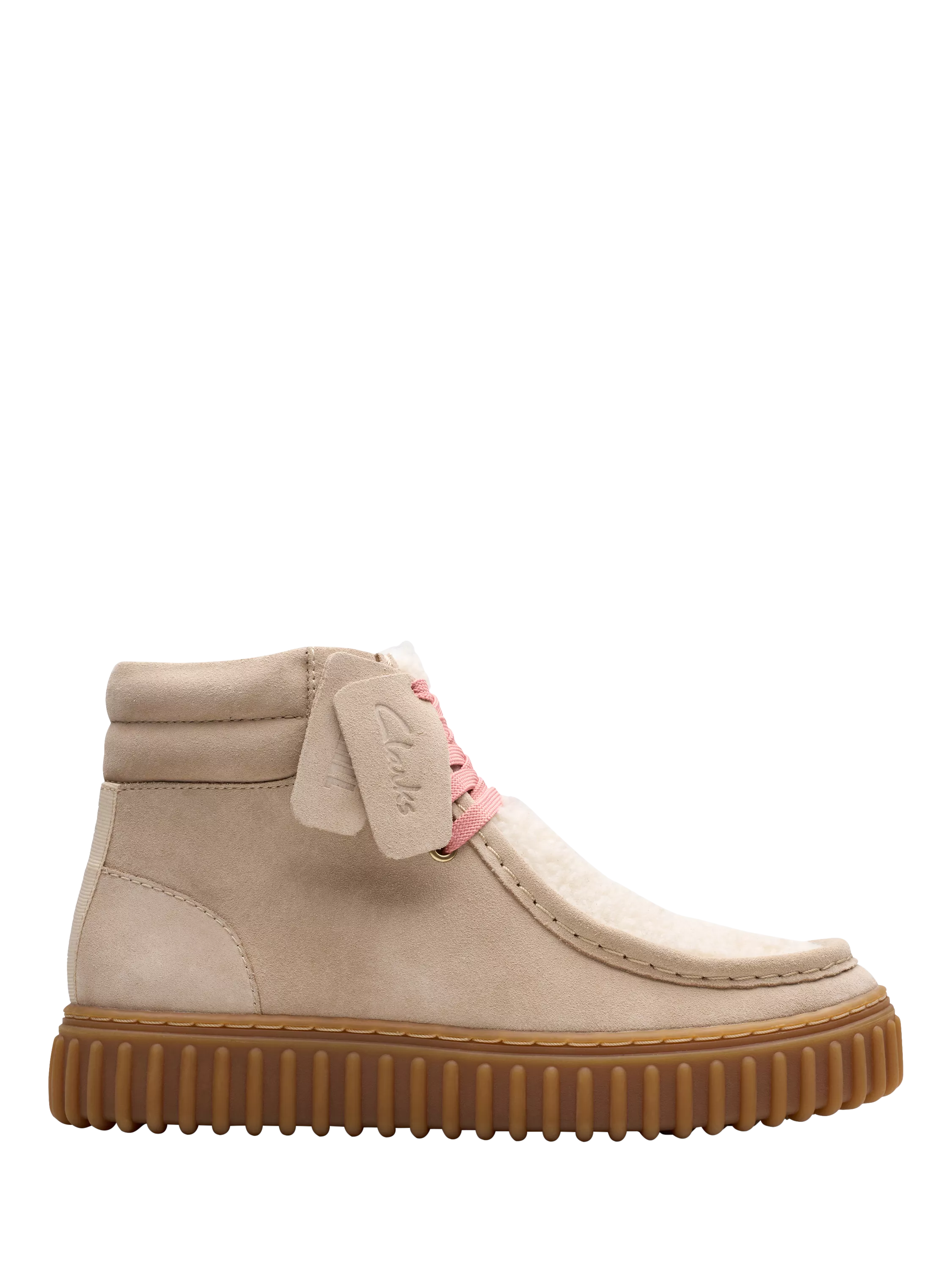 The bold, ribbed outsole that defines these ankle boots is born from the Clarks archives. Showcasing a streamlined, lace-up design that models its curves and contours on their iconic Wallabee, these boots are crafted from premium suede with intricate topstitching and contrasting laces. Heritage-inspired, with a shearling vamp, cushioned foam footbed and durable outsole.