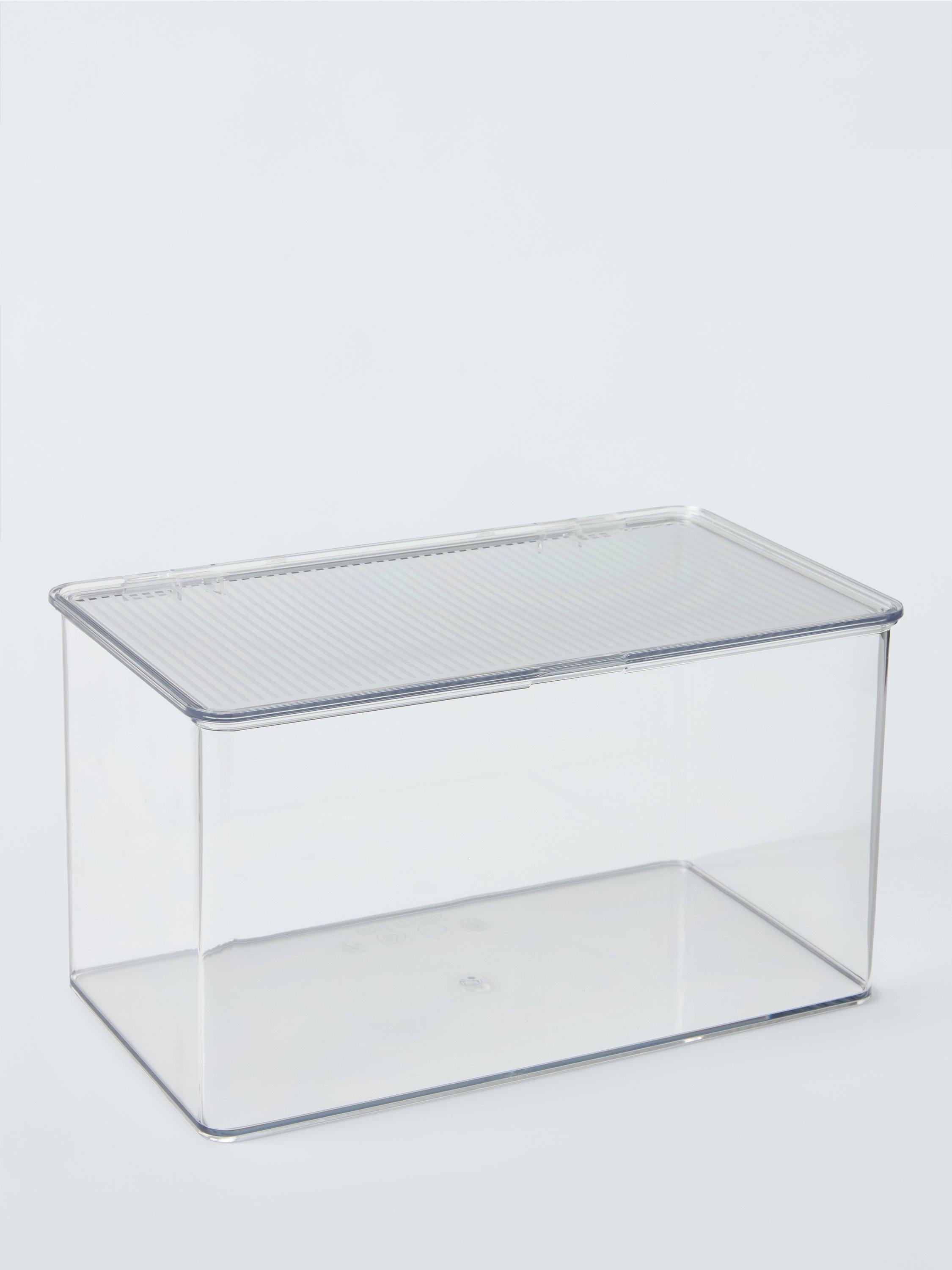 John Lewis presents this clear plastic storage box complete with a secure lid for effective home organisation. It is ideal for tidying away various everyday items neatly throughout your house, keeping spaces clean. This multi-purpose container offers convenient visibility of contents inside.