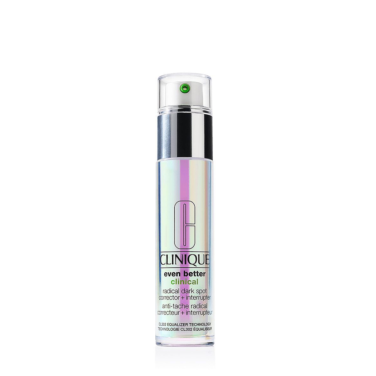 Even Better Clinical Radical Dark Spot Corrector + Interruptor 50mlOur most powerful brightening serum helps minimize the appearance of discoloration and blemish marks, while interrupting the look of future dark spots. Now with double the dose, this formula features our proprietary brightening molecule for a more even skin tone plus helps minimize the look of blemish marks. Interrupts the look of future dark spots, too.Our “damage eraser” with patented CL302 Equalizer Technology is now more concentrated, with boosted technology to deliver dramatic brightening results—yet is still gentle enough for all skin types. How To UseUse twice a day, morning and night.