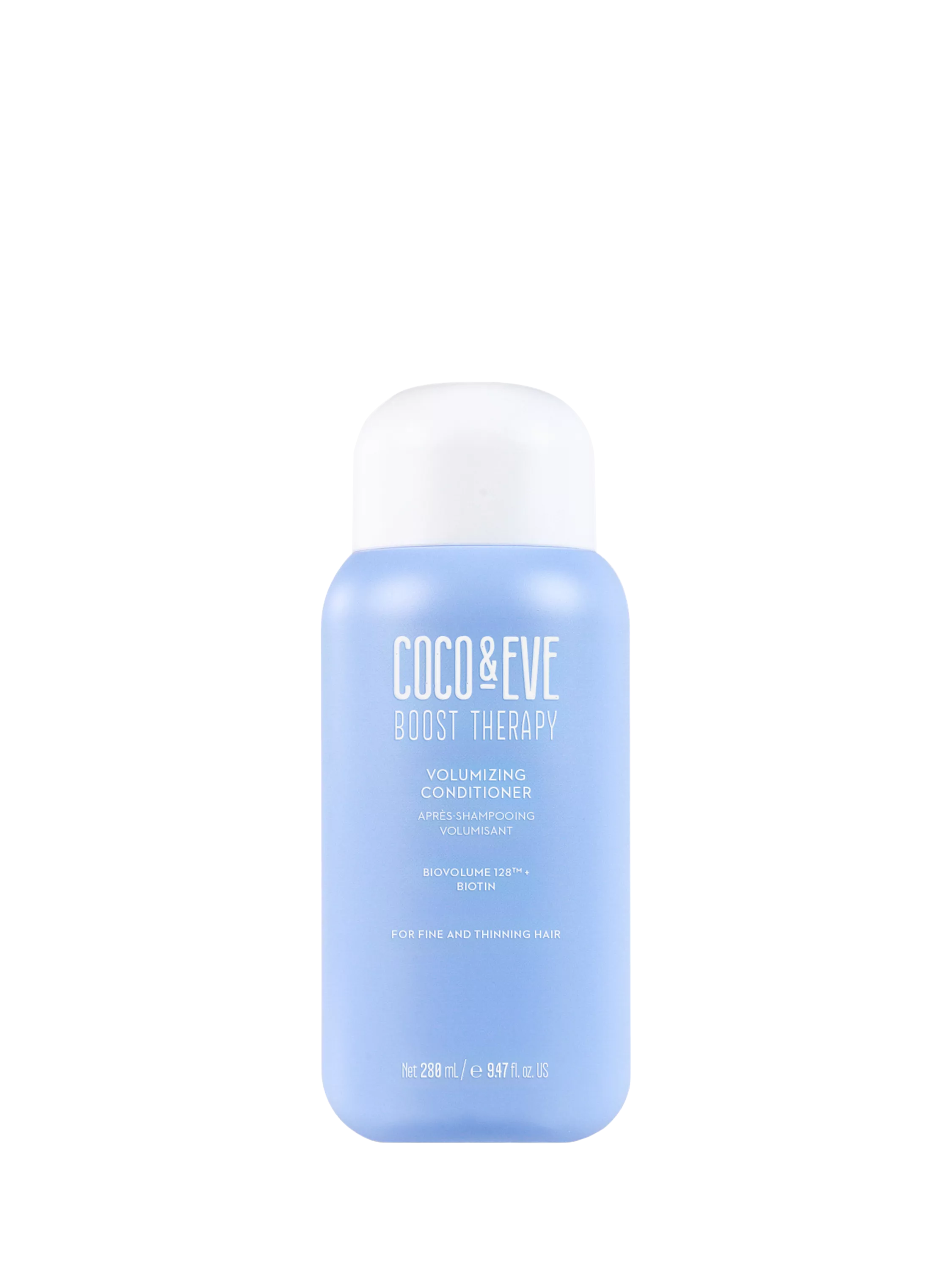 Experience fuller, healthier-looking hair with Coco & Eve Boost Therapy Hair Volumising Conditioner, enriched with BioVolume 128™ for a volume boost and a refreshing peppermint scent.