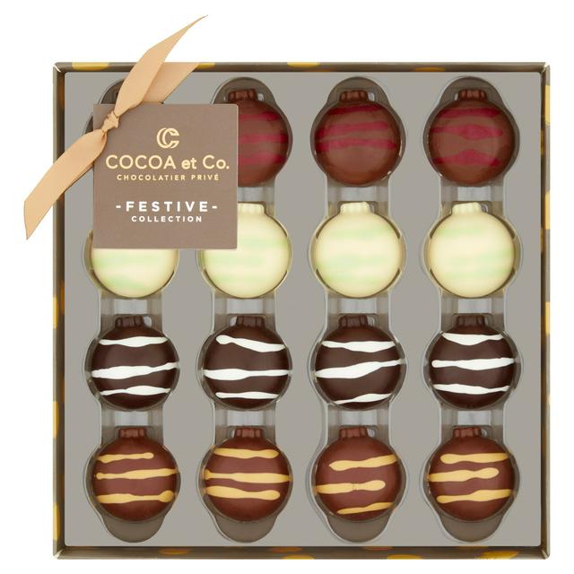 This Cocoa et Co Festive Collection features an assorted selection of milk, dark, and white filled chocolates perfect for seasonal sharing. Each piece offers a unique flavour experience derived from carefully selected ingredients and artisanal fillings.
