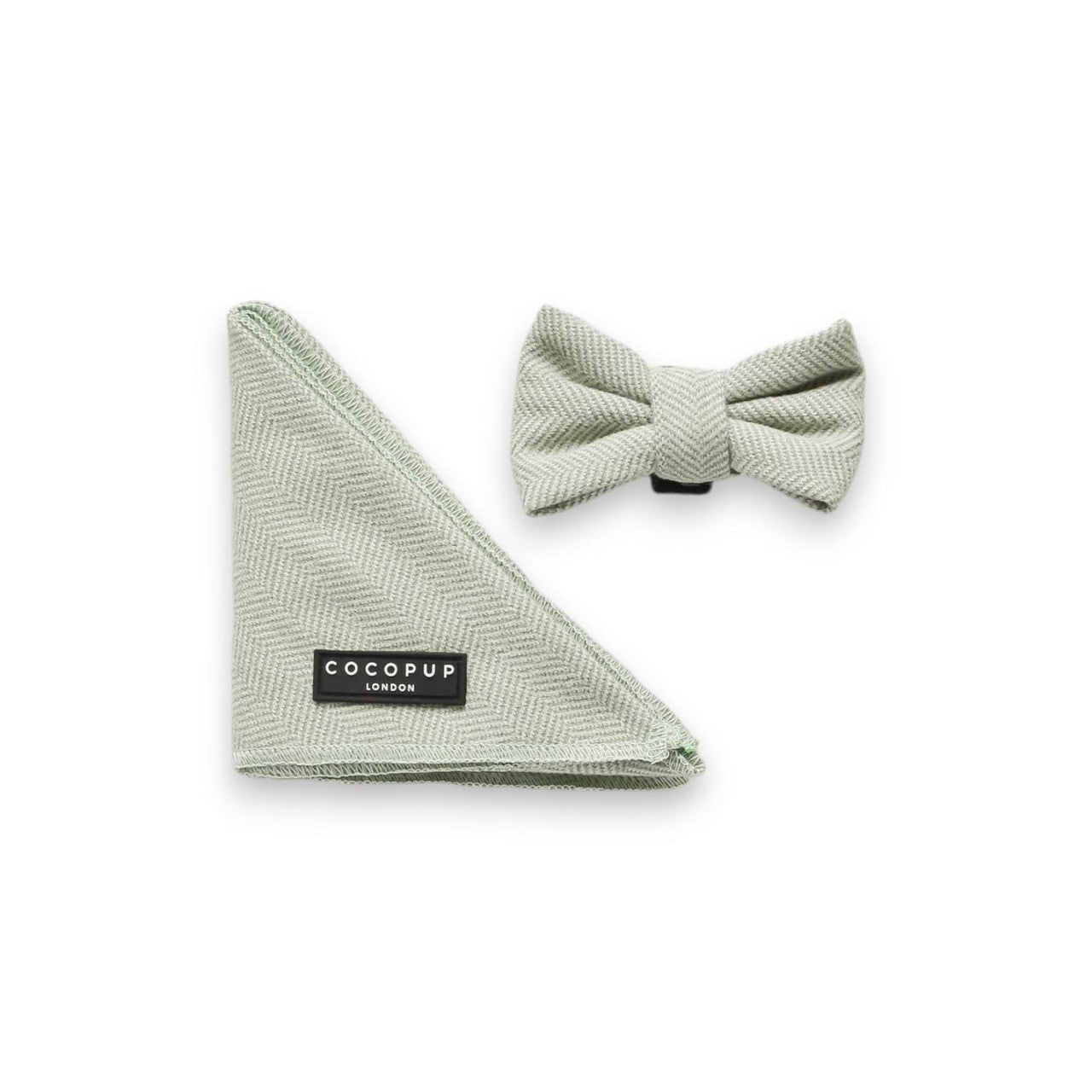 Elevate your dog’s look with this stylish and coordinating set from Cocopup London. This offering includes both a triangular bandana and a classic pre-tied bowtie, made from the same distinguished fabric.