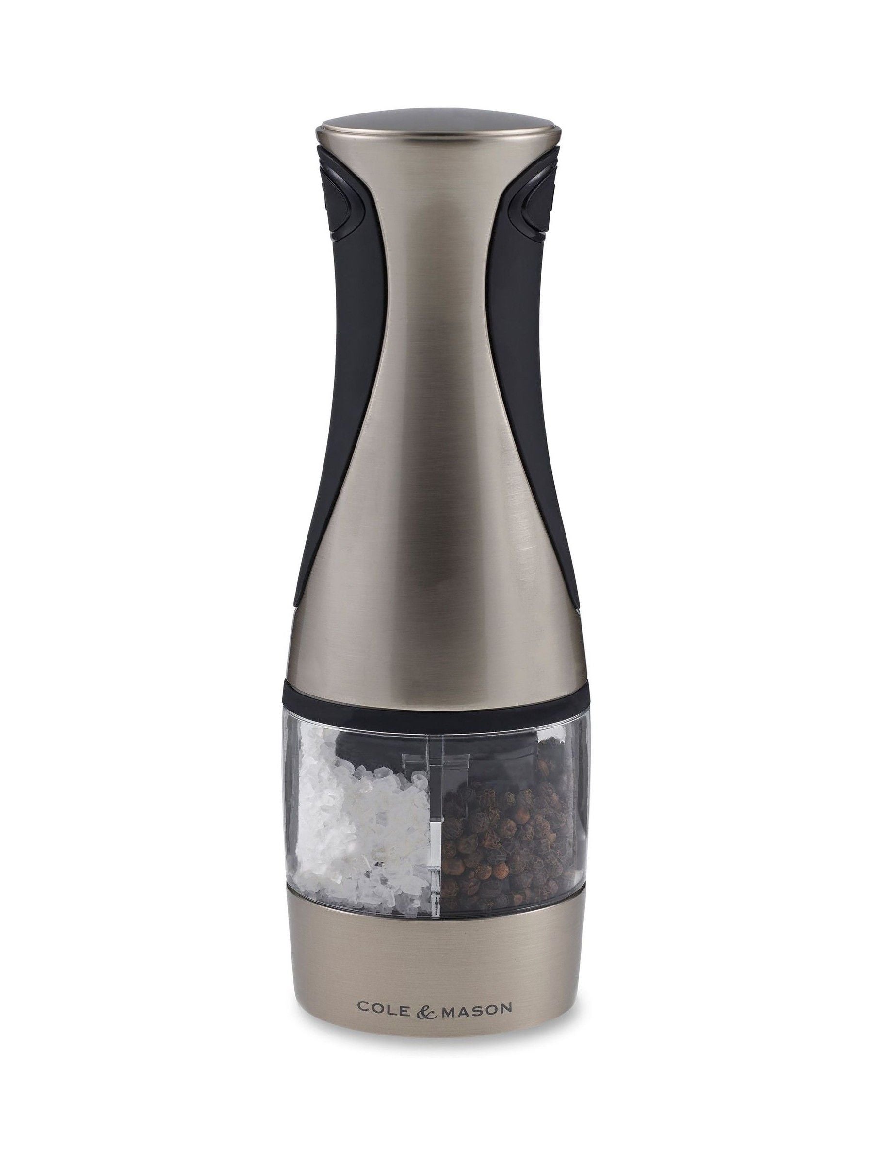 The perfect mill for those that like to incorporate technology into the everyday. The compact 2 in 1 design is also ideal for those that only have limited space to store their favourite kitchen products. Keep it on the dining table, next to the oven or in the kitchen cupboard with other seasoning products as long as it is within easy reach to jazz up meal times. A unique electronic 2 in 1 mill, that offers you freshly ground salt or pepper from one mill with just the press of a button. Easy to operate by simply pressing and holding down the button for your chosen seasoning. Release the button once your dish is seasoned as desired. More compact than separate salt and pepper mills but without compromising on style or performance. Ideal to keep next to the cooker or on the dining table. To clean, wipe with a damp cloth and use a clean cloth to dry. We recommend you do not use any cleaning products as this can affect the finish of the product. Do not immerse in water or place in a dishwasher. 6 x AAA batteries (not included) are required. Alkaline batteries are recommended for the best performance. The electronic components are covered by a 2-year guarantee. All Cole & Mason salt and pepper mills are covered by our mechanism guarantee.