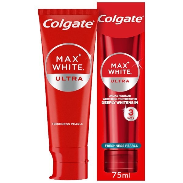 the colgate max white ultra freshness pearls teeth whitening toothpaste with revolutionary deep oxygenated action is clinically proven to give you whiter teeth in 3 days stains caused by food and drink