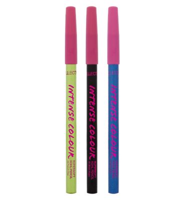 This Collection Intense Colour Kohl Pencil set delivers vibrant, highly pigmented colour application for dramatic definition. Each pencil features a super soft formula that glides smoothly onto the skin without dragging. The packaging highlights intense pigmentation and a comfortable, blendable texture, ensuring versatile results for creating expressive eye looks.