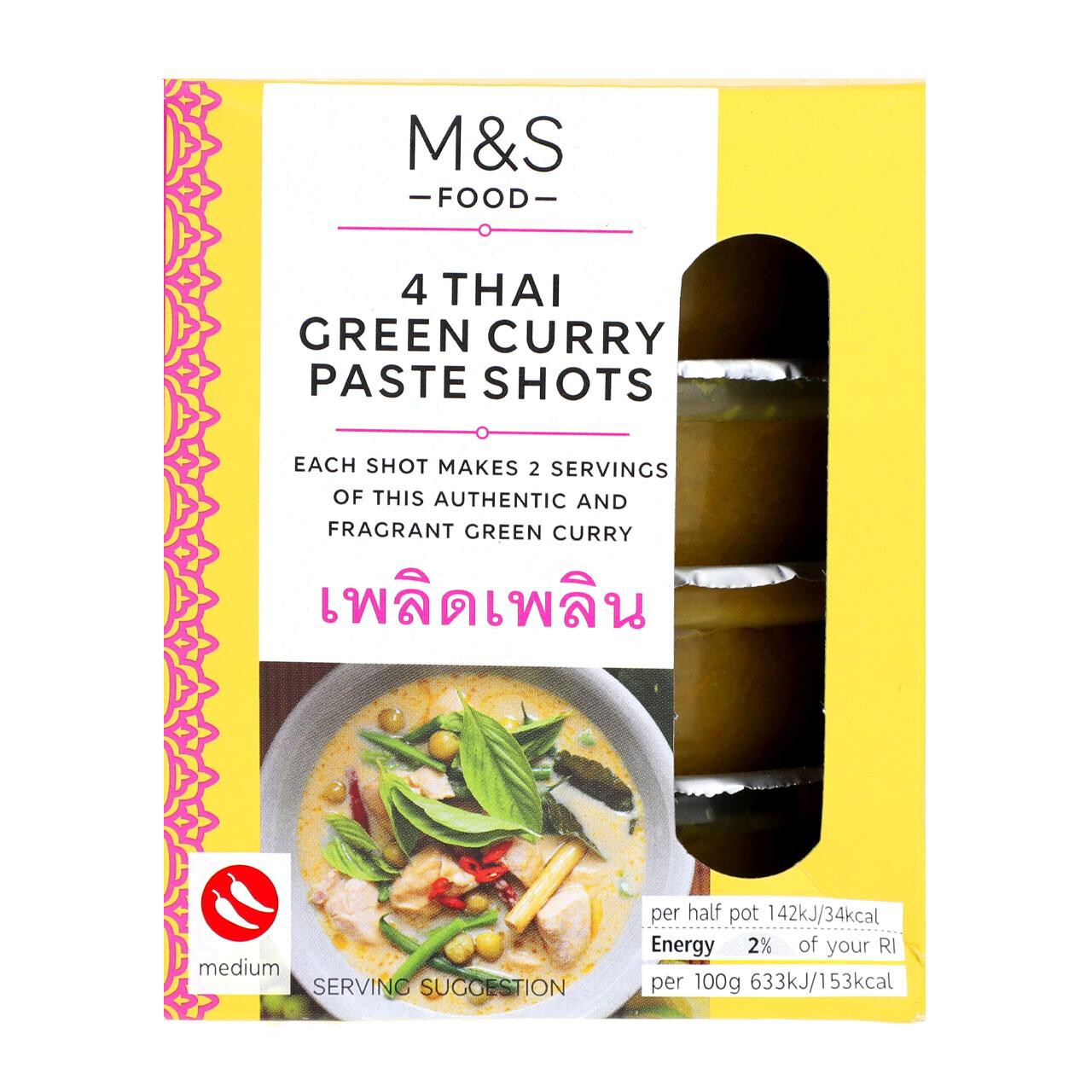Prepare authentic and aromatic Thai food using these convenient M&S curry paste pots. This value pack contains four sealed shots of vibrant green curry paste, perfect for meal preparation.