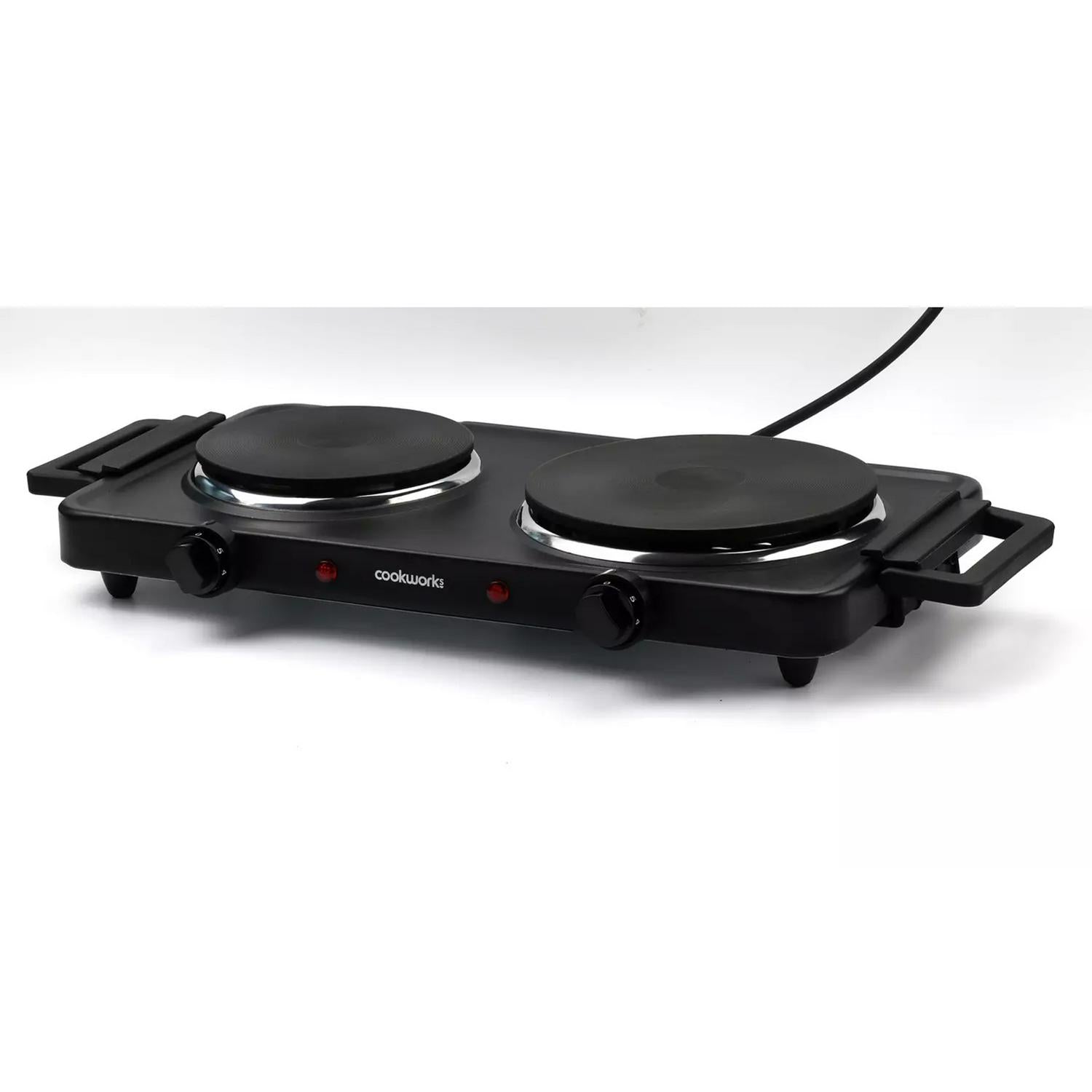This Cookworks double hotplate hob offers versatile cooking capabilities in a compact format. It features two durable cast iron plates, allowing you to prepare multiple dishes simultaneously. The unit is designed to be easily portable for flexible placement in any kitchen area.