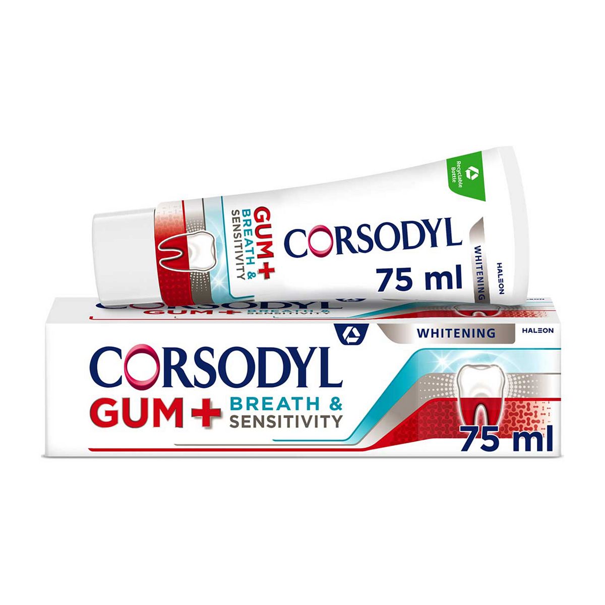 Corsodyl Gum+ Breath & Sensitivity whitening toothpaste targets plaque bacteria deep between the teeth and uses pro-neutra technology to neutralise bad breath bacteria. When bacteria builds up along the gum line, it can lead to bad breath and the gums receding, which exposes the tooth’s surface underneath, leaving it unprotected and vulnerable to sensitivity. Great for people with sensitive teeth, this toothpaste forms a protective layer around vulnerable parts of the tooth.
