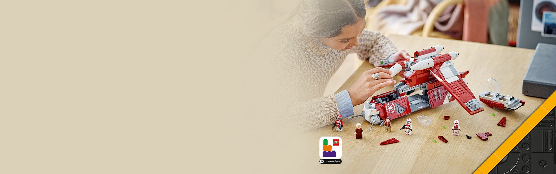 Fans can take command of their own Star Wars: The Clone Wars missions with this LEGO® brick Coruscant Guard Gunship (75354). It features 2 pilot cockpits, 2 stud shooters, 2 adjustable cannons and a handle for flying. The rear hatch and sliding side panel give easy access to the cabin... Read More