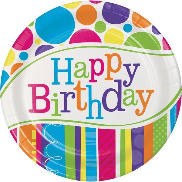 Material: Paper. Width: 7in. Durable. Design: Printed, Spotted, Stripe Detail, Text. Occasion: Birthday.