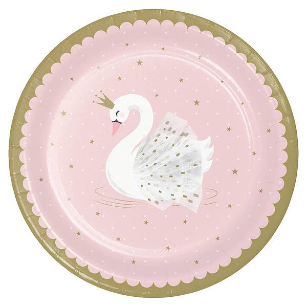 Prepare for your celebration with this convenient pack of eight themed paper party plates. These 9-inch plates feature an enchanting Swan Princess design perfect for themed occasions. They are constructed from paper and meet food-grade standards for safe serving at any gathering.