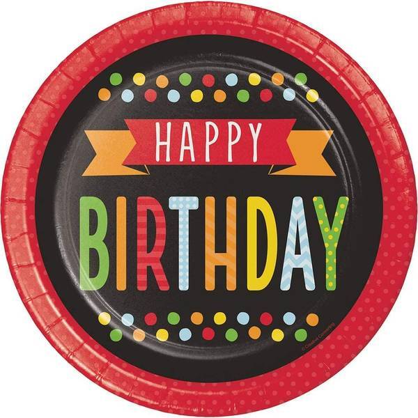 Prepare for your celebration with this convenient pack of eight paper dinner plates. Featuring a cheerful polka dot design, these plates are specifically suited for marking any birthday occasion. Their 9-inch width provides ample space for serving substantial meal portions easily.