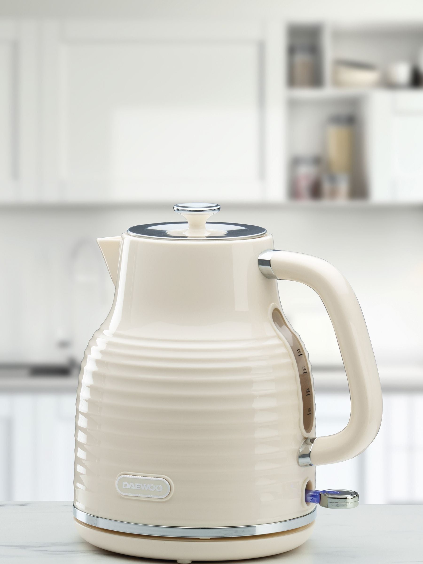 New from Daewoo is our stunning Sienna range. The Sienna jug kettles feature a traditional lift off lid, with a ridged textured body. Set on a cordless base with a 360° design, the jug kettle is ideal for both left and right-handed use. The powerful 3kw element allows for a fast boil, meaning you’re never waiting long for your next hot drink. With a family sized 1.7 litre capacity, and a clear water fill indicator on the side of the body. The kettle also features a power-on LED indicator, and a removable limescale filter