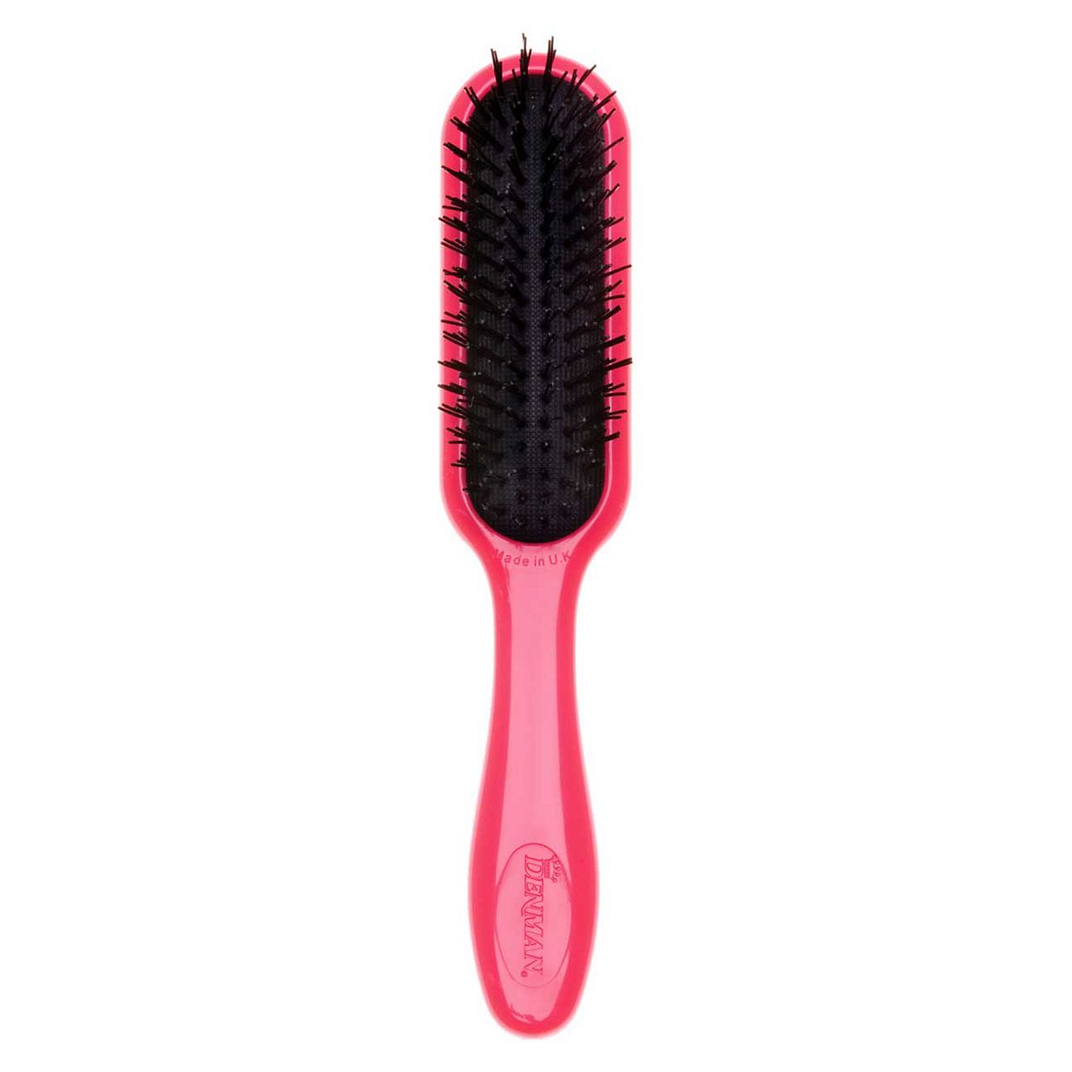 Fast and gentle way to detangle children’s hair without the tears. Candy pink handle makes this Denman hairbrush every little girl’s favourite accessory. Super-soft nylon bristles gently glide through the hair. Removes tats and tangles. Air-cushioned pad follows the contour of the head for smooth damage-free grooming. Also ideal for use on wigs and hair extensions