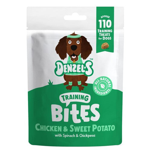 Denzel's Chicken and Sweet Potato Training Bites are soft, high-protein rewards perfect for training. These tasty, bite-size pieces are made from 100% natural ingredients and gently baked in the UK. They are formulated to be low in calories, making them suitable for regular training or rewards when you are out and about.
