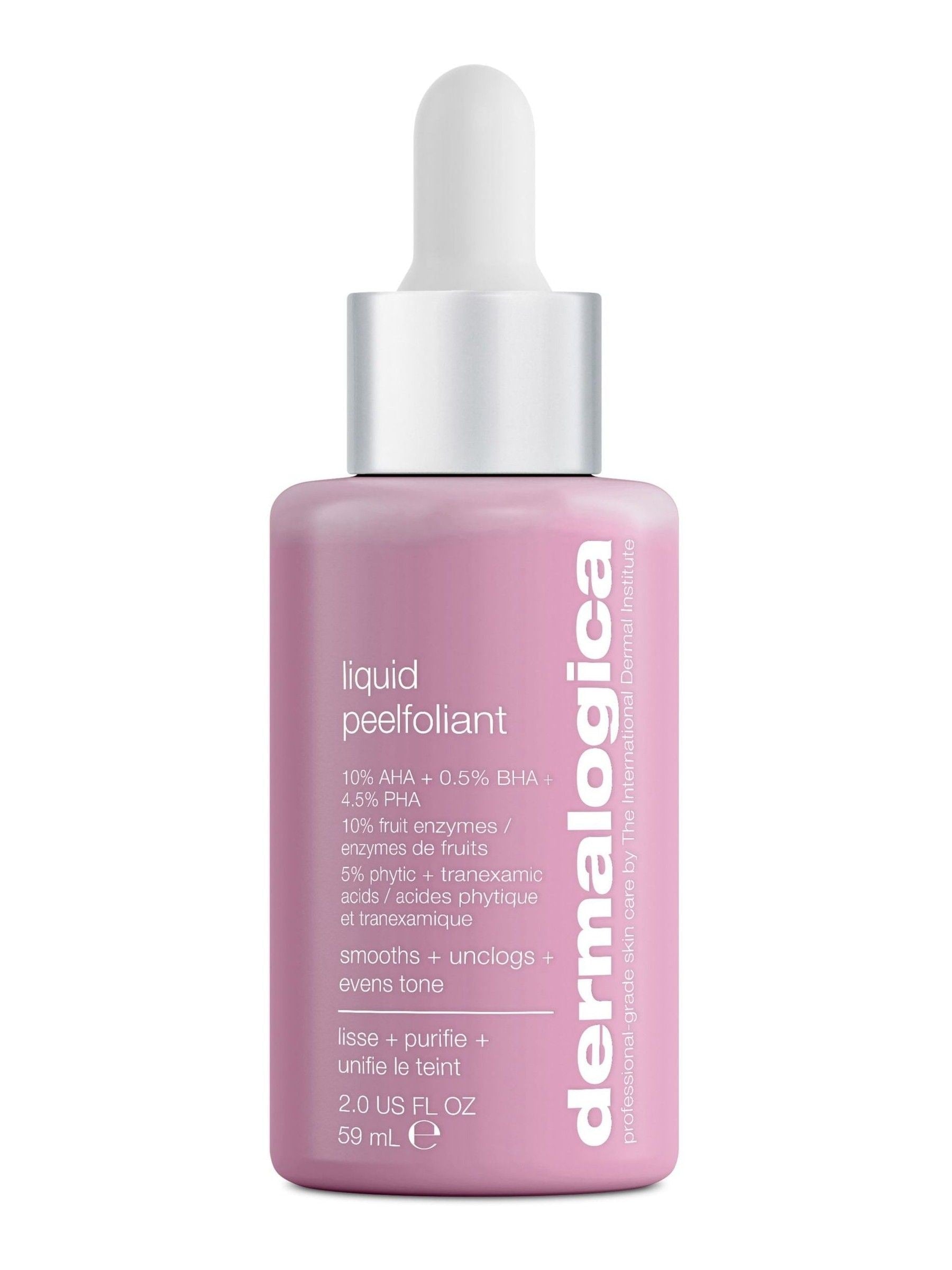 This professional grade peel bridges the gap between weekly rinse-off and daily leave-on treatments with a maximum-strength combination of exfoliants (15% AHA, BHA, and PHA; 10% fruit enzymes; and 5% Phytic and Tranexamic acids).