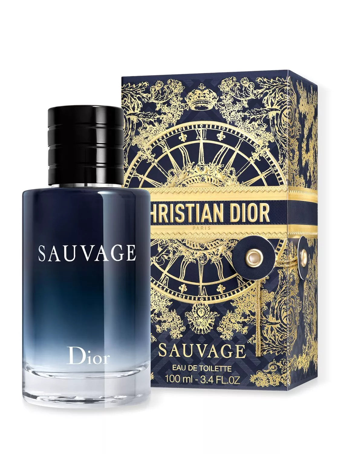 To celebrate the holiday season, Sauvage Eau de Toilette is housed in a case that transforms it into an elegant gift idea. Created by Pietro Ruffo, artist and friend of the House of Dior, the decoration that adorns the Sauvage wrapping is inspired by regal symbols: a celestial sun and a midnight-blue graphic mosaic.