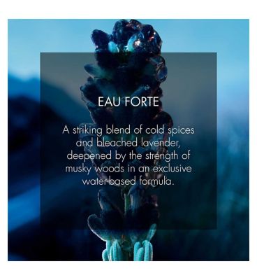 The new Sauvage Eau Forte captures legendary freshness amplified by water's strength. Francis Kurkdjian crafted this composition, balancing the lightness of an eau de toilette with the intensity of a parfum. This creation explores a fresh and spicy aromatic profile within an innovative formula.