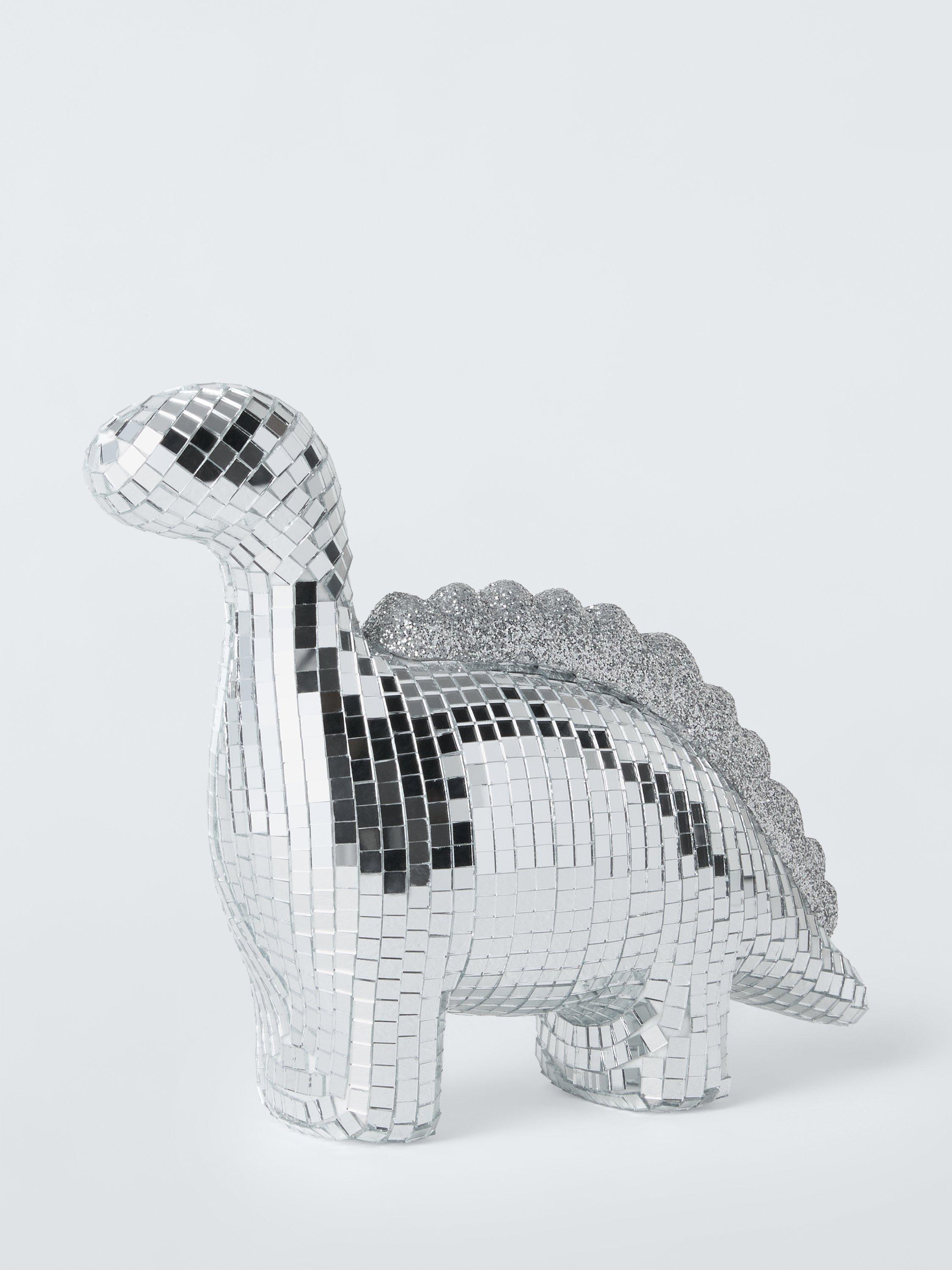 This John Lewis Christmas room decoration showcases a festive stegosaurus figure, ideal for seasonal home displays. The entire body is adorned with numerous silver glass chips, providing a wonderfully sparkly aesthetic. This unique figure is designed to cast dynamic, scattered light effects across your room during celebrations.