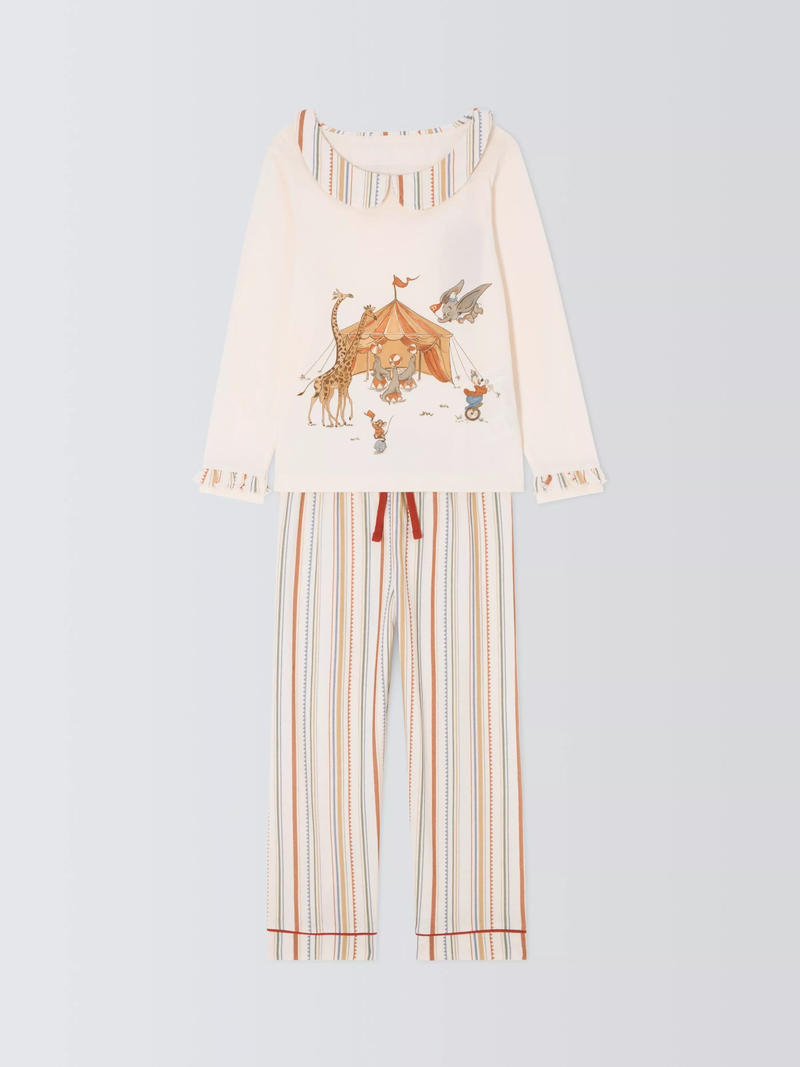 This stylish cotton pyjama set is designed with care and includes a printed top, teamed with striped bottoms.