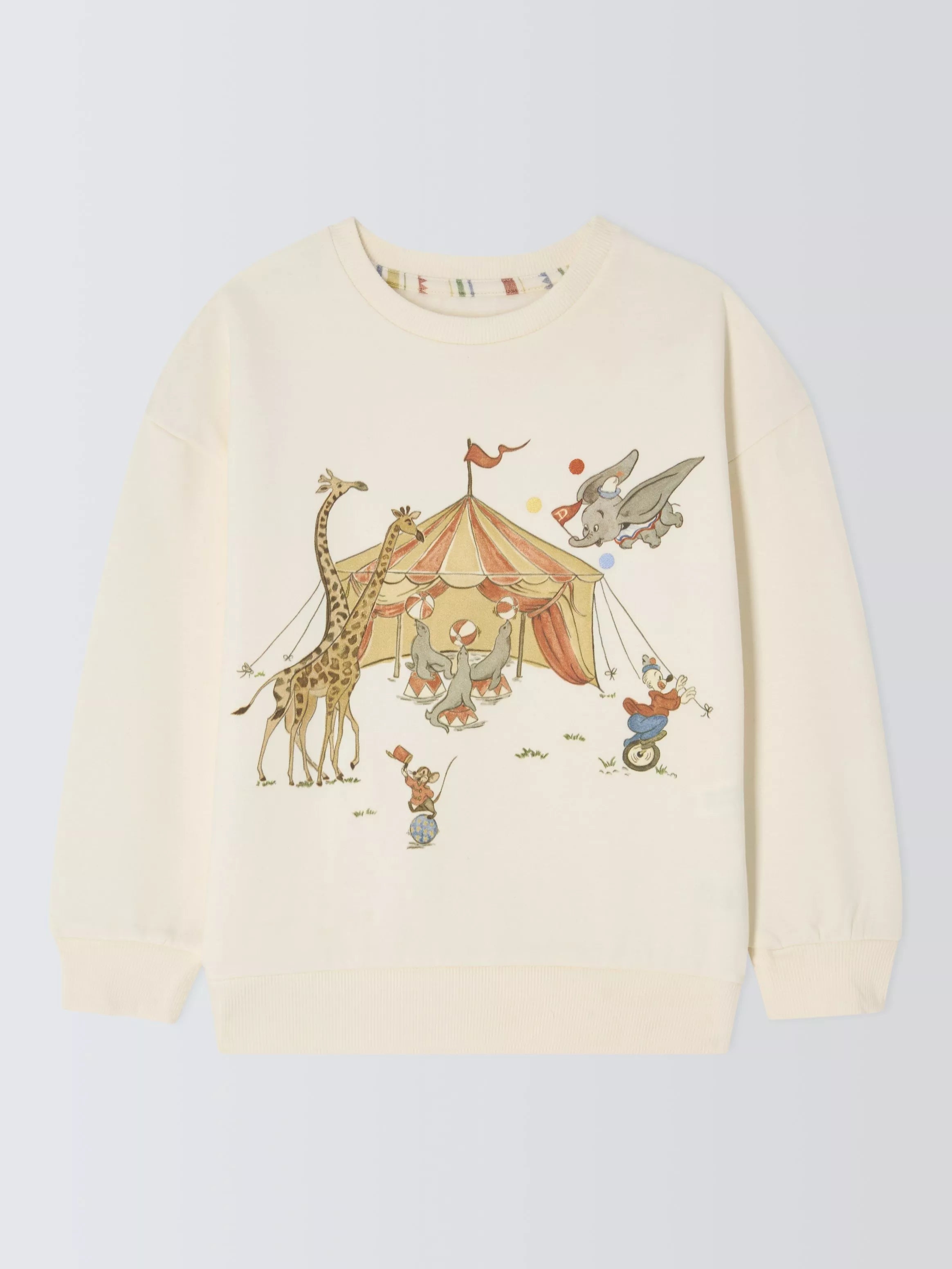 This adorable Dumbo sweatshirt, a delightful collaboration between Disney and Sanderson, is a charming addition to any child's wardrobe. Made from soft 100% cotton jersey, it features a hand-painted circus design perfect for little ones who love Disney magic. A great gift for fans of classic Disney animation.