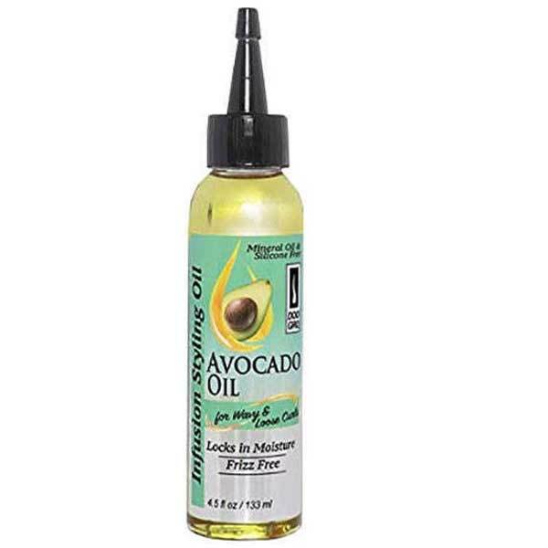 doo gro infusion styling oil avocado oil is a non greasy light weightand it makes hair feel soft and smoothit helps repair weak and damaged hair