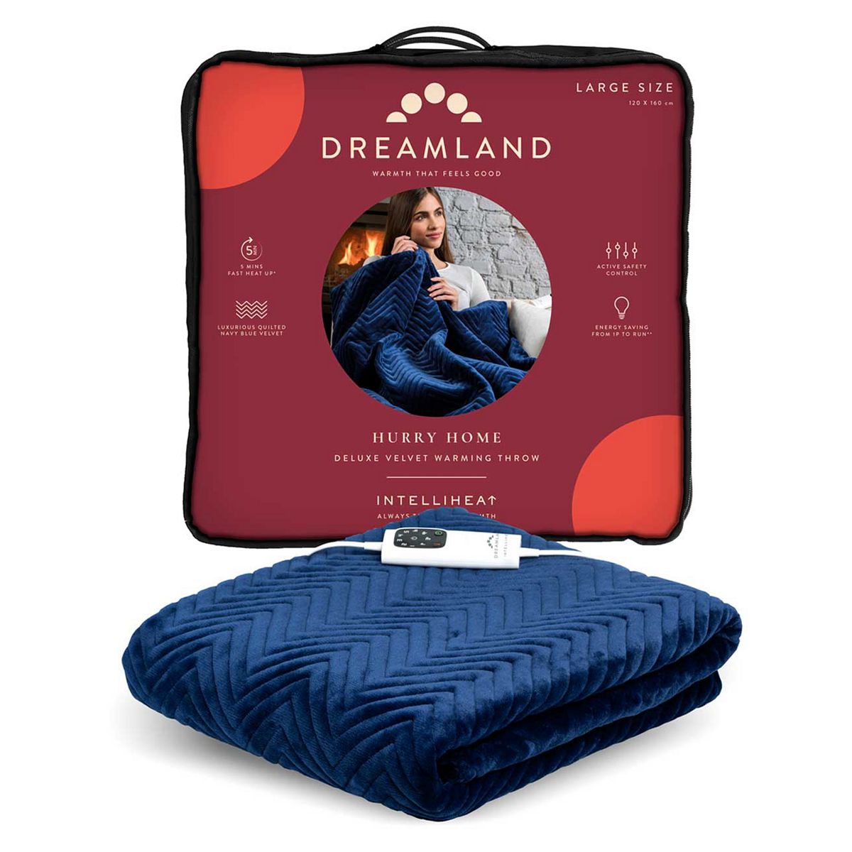 Dreamland Heated Herringbone Throw - Navy, 120x160cm