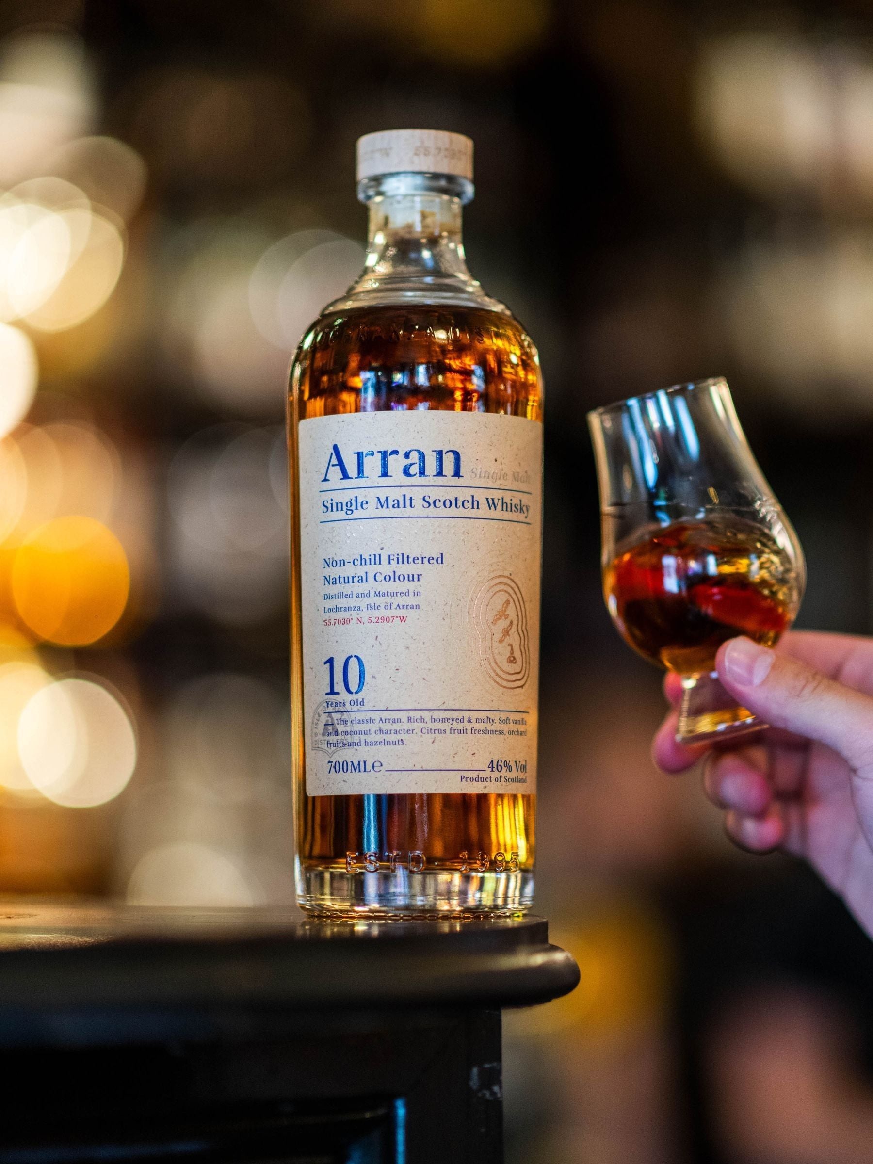 This 46% ABV 10 year old malt from Arran captures the fresh and unique island style of the western isle s eponymous distillery. Rich vanilla sweetness gives way to cinnamon on the nose, the soft and sweet texture taking on a spicy edge. The palate is sweet with apple and citrus against a background of oak. UK Mainland Delivery Only