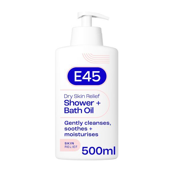 Read MoreE45 Dry Skin Relief Shower & Bath Oil gently cleanses, soothes, and moisturizes very dry and sensitive skin. Clinically proven to hydrate for up to 24 hours, its emollient-rich formula helps prevent moisture loss. Dermatologically tested, fragrance-free, and suitable for the whole family.