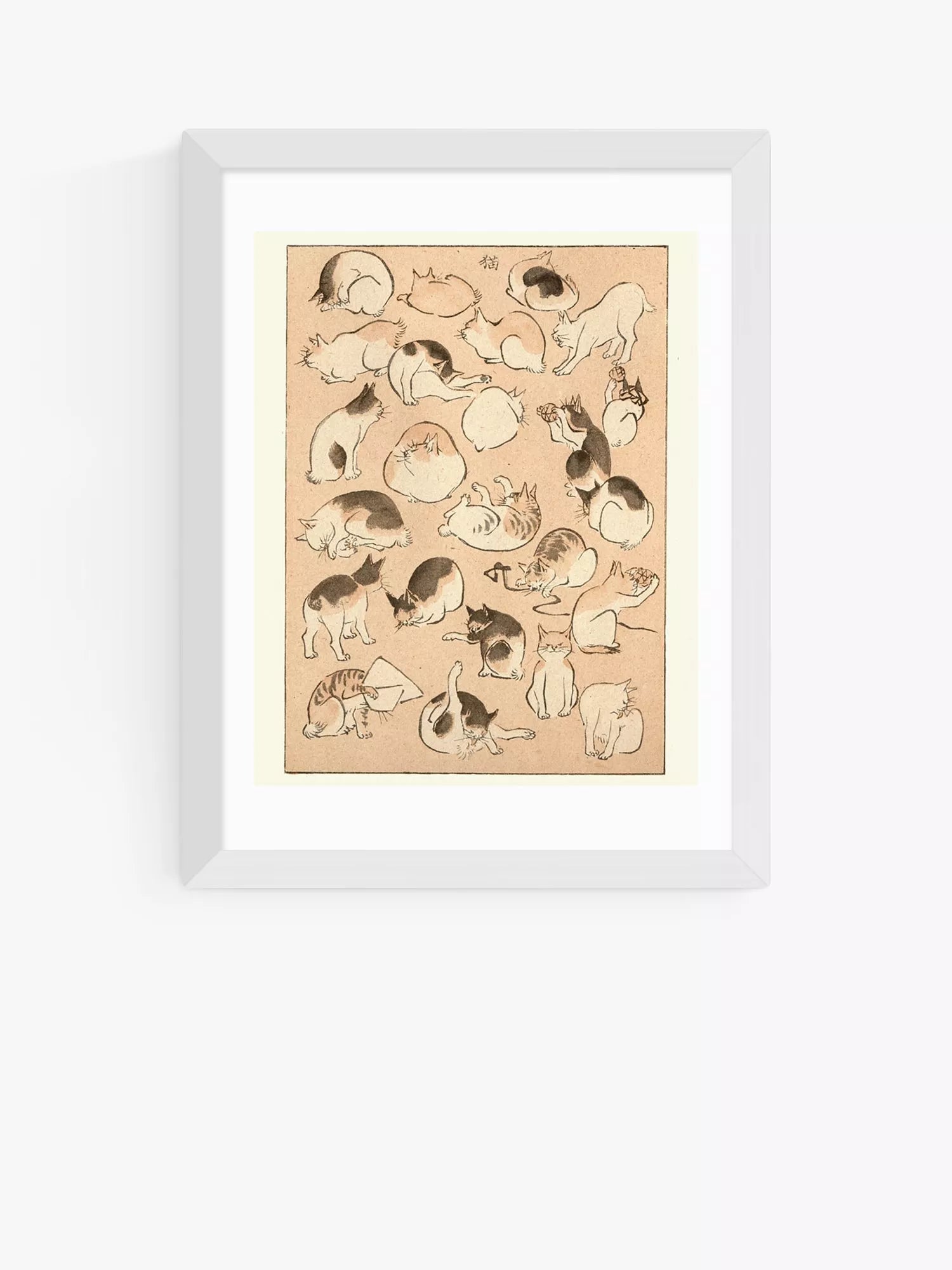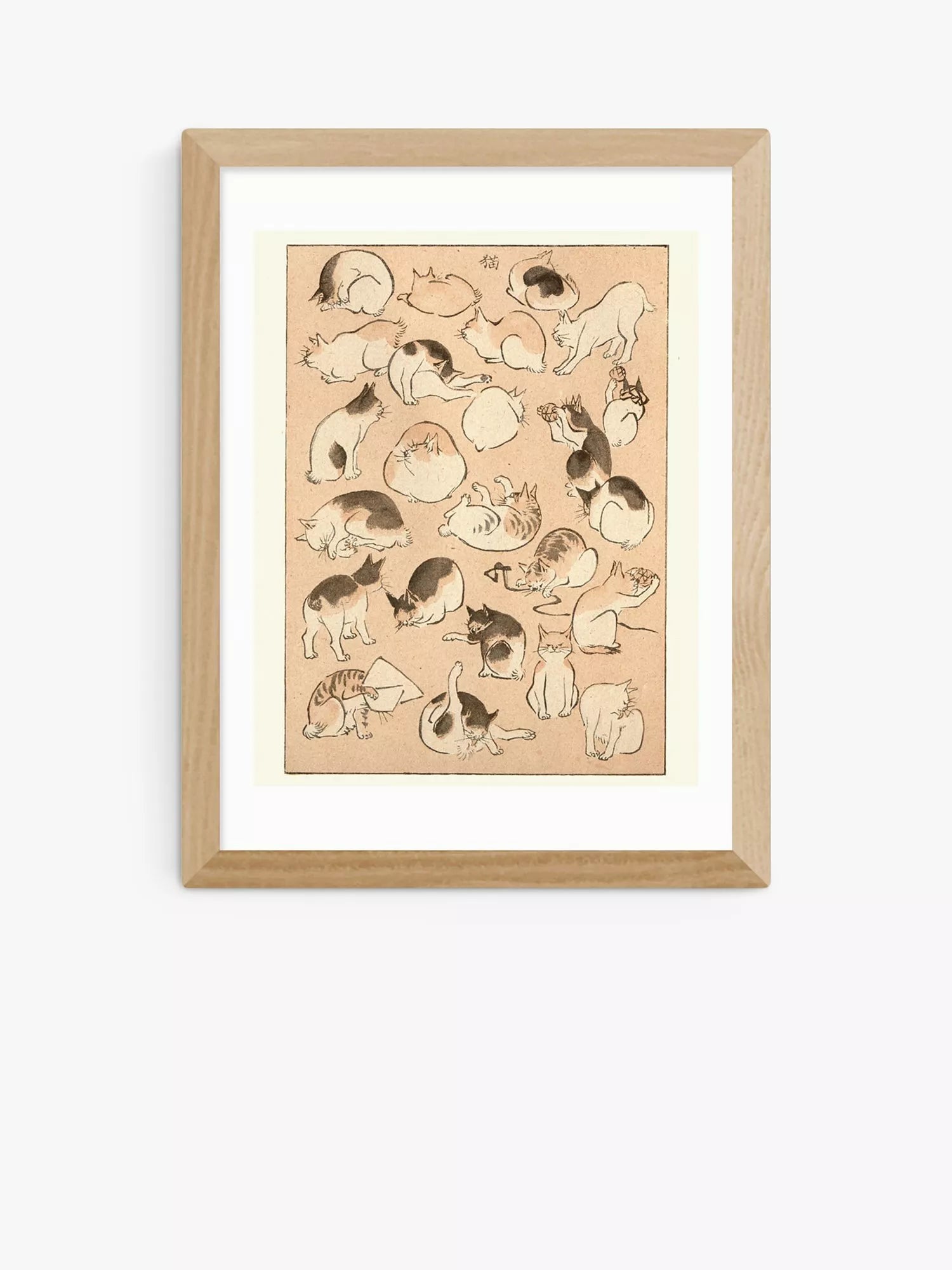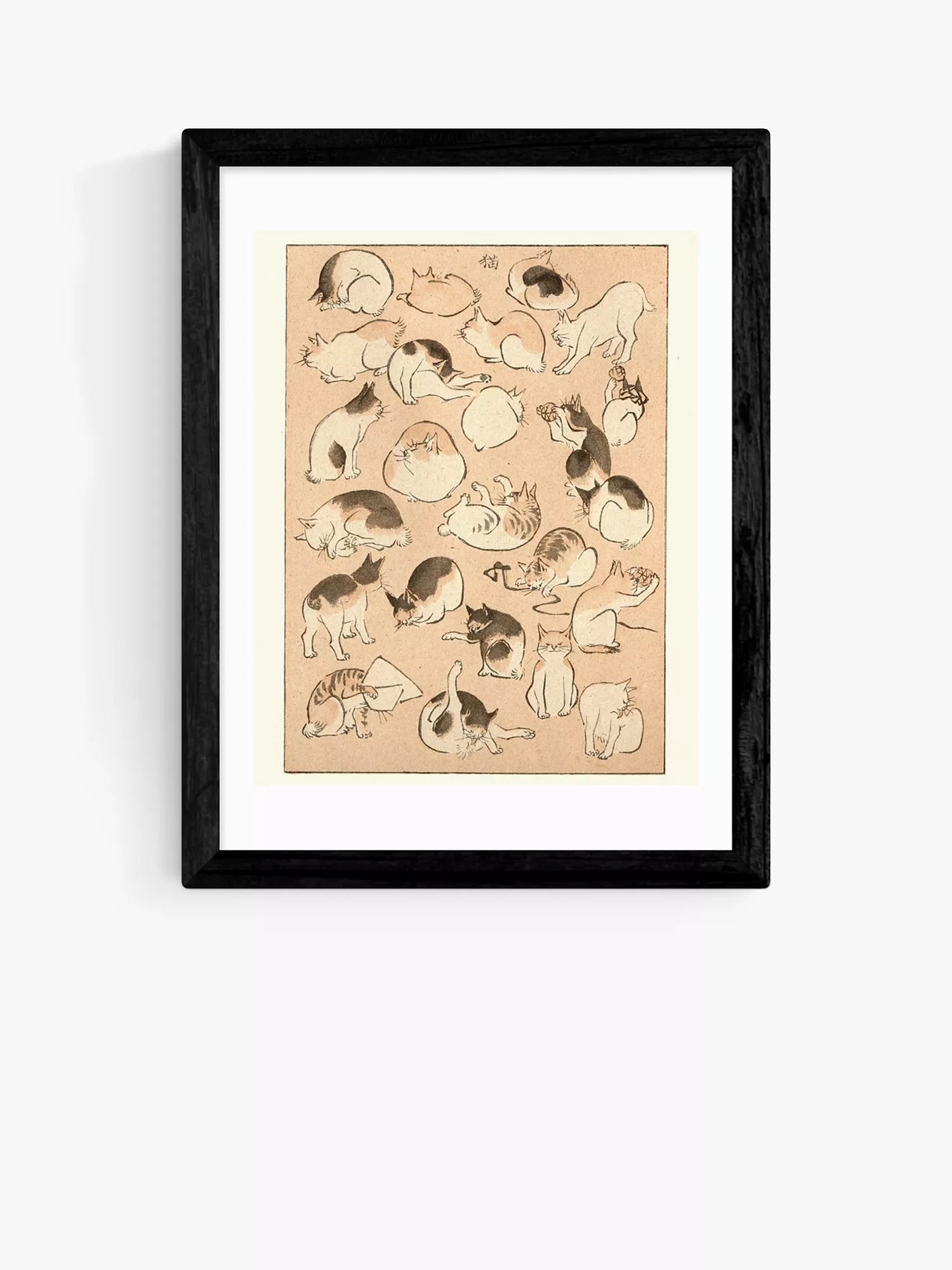 A playful framed cat print by nineteenth-century Japanese artist, Hiroshige.