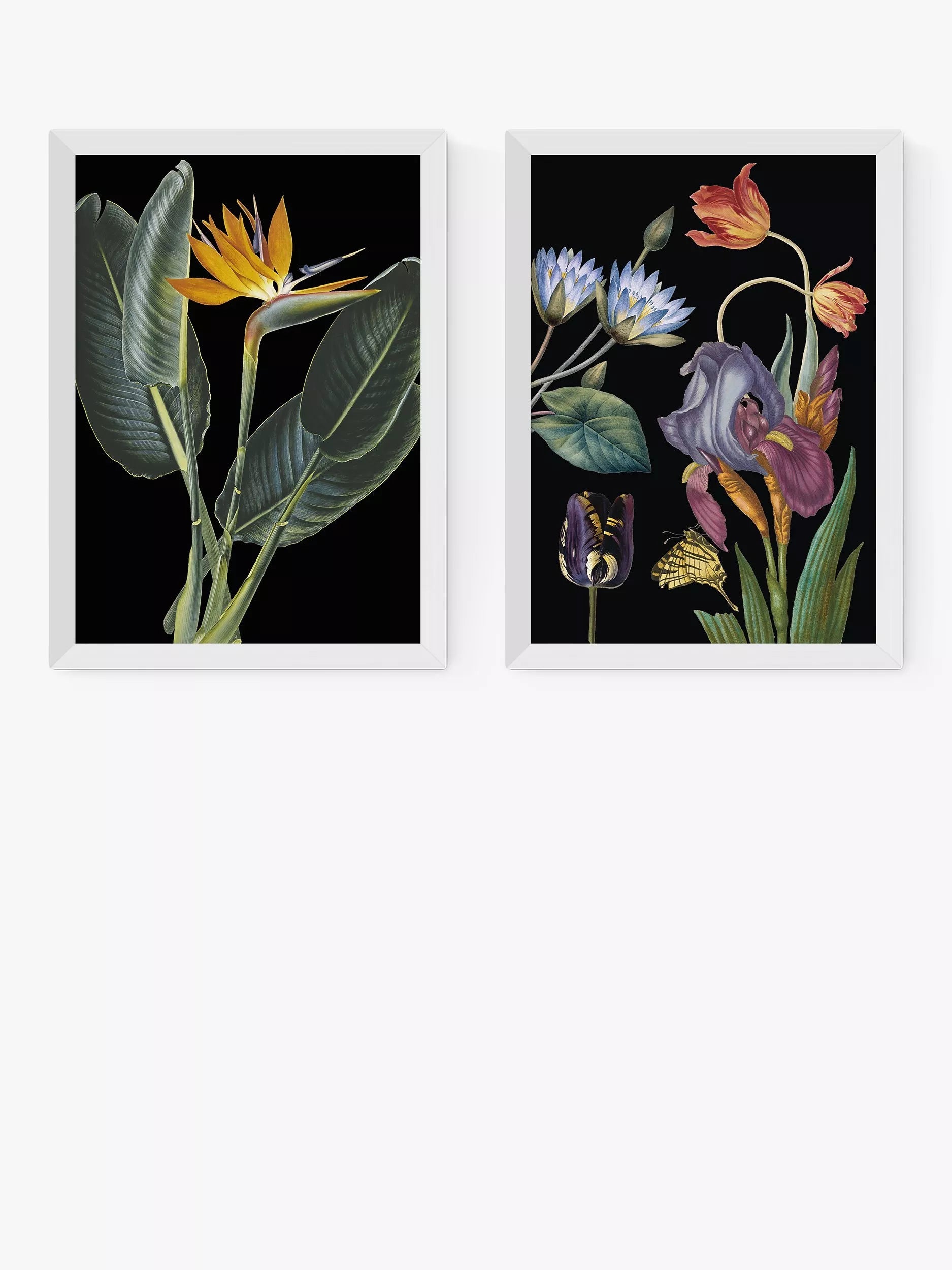 EAST END PRINTS have collaborated with the Natural History Museum to create a beautiful collection of illustrative collages and prints from the museum's archives. Create a gallery wall of vintage botanical prints with this pair of reproduction floral illustrations on contrasting dark backgrounds.