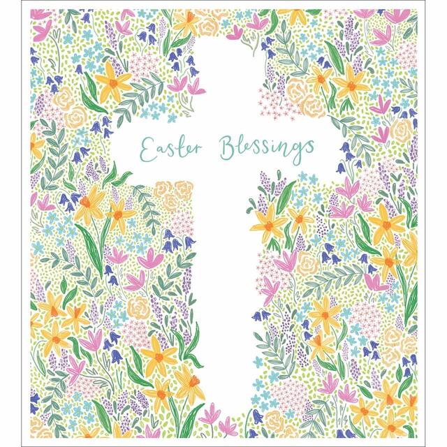 Greeting card by Woodmansterne with matching recyclable envelope. Message inside reads: Happy Easter. Standard letter post