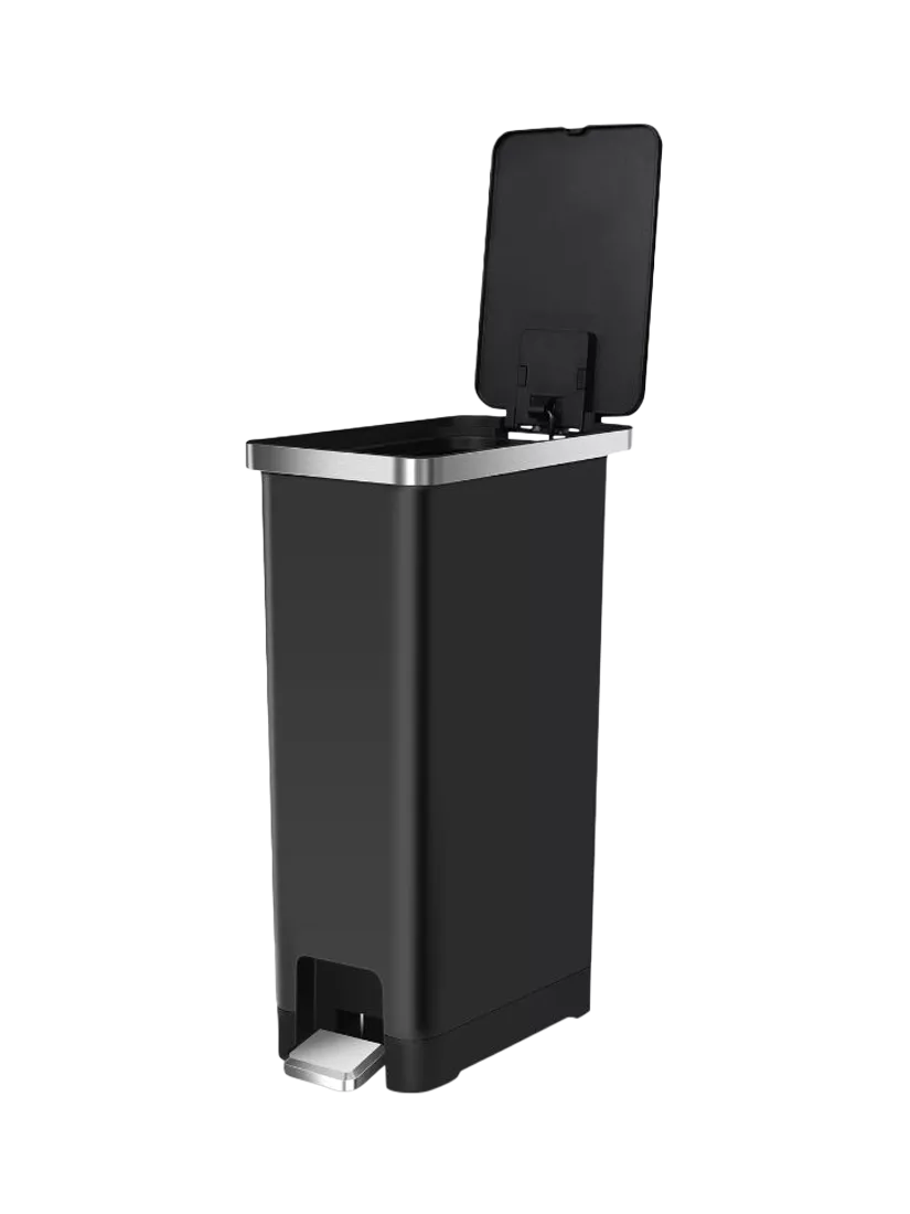 This pedal bin features a metallic-look ring that adds refined elegance to any room. Made from recyclable materials, this eco-friendly option combines sustainability with sophistication. Its slim, tall design fits perfectly into your home or office, saving space without compromising on style.