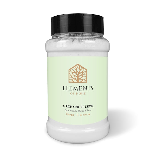 Eliminate lingering odours trapped deep within your carpets using the Elements of Home Orchard Breeze Carpet Freshener. Experience the complex fragrance profile featuring delicate notes of sweet pear, elegant freesia, warm honey, and classic rose.