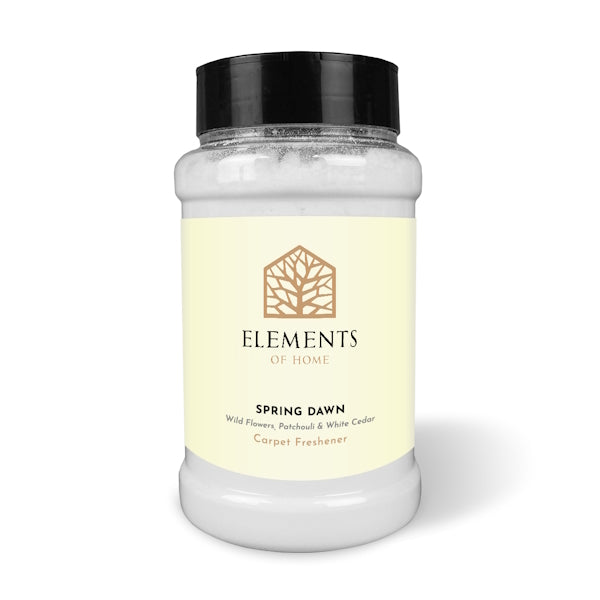 This Elements of Home Spring Dawn product is a carpet freshener designed to eliminate odours trapped deep within carpets. It features a layered fragrance blend of wild flowers, patchouli, and white cedar for clean results. Application is straightforward: simply sprinkle the powder onto your carpet and allow it to sit for one hour before vacuuming.