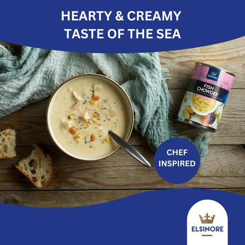 This Elsinore Fish Chowder delivers a comforting, hearty taste of the sea blended with a diverse medley of vegetables. This chef-inspired recipe has been updated for a superior flavour experience. It provides a rich and satisfying meal straight from the tin.