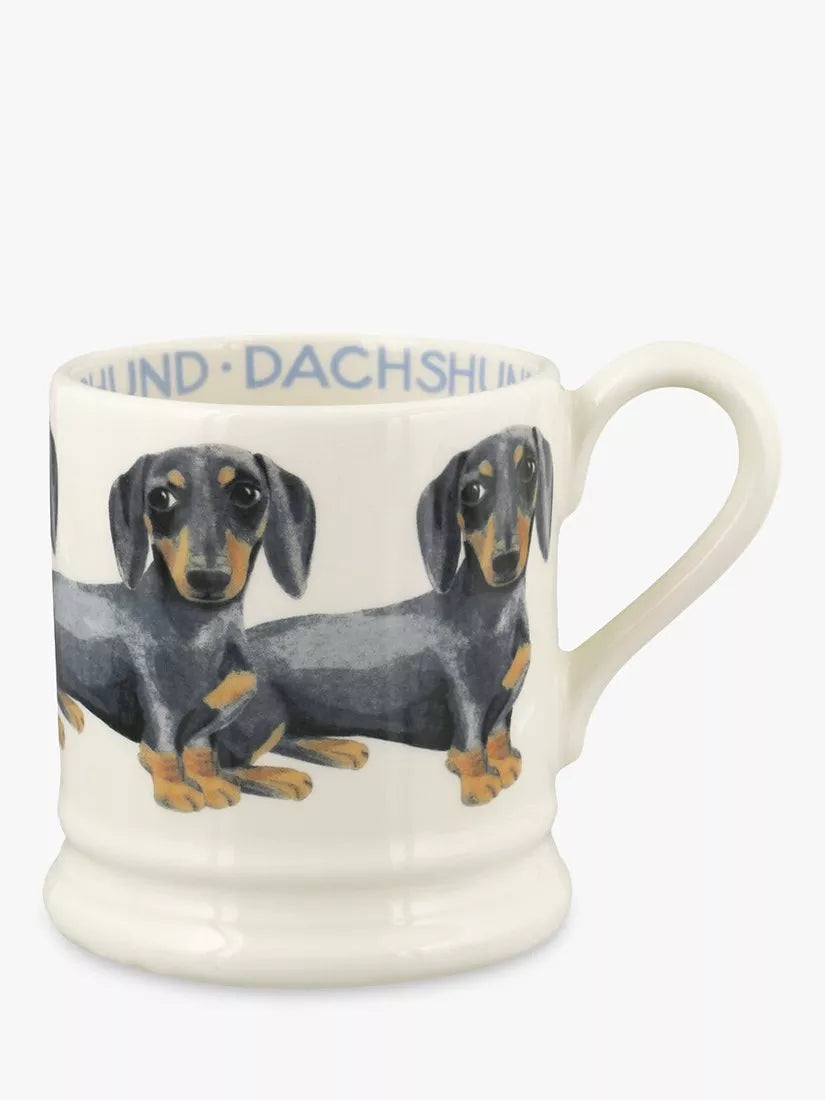 Treat yourself to this charming Emma Bridgewater Dachshund Half Pint Mug – a delightful addition to any tea or coffee lover's collection. This adorable mug, perfect for a cozy cuppa, showcases the iconic Emma Bridgewater style, combining traditional British craftsmanship with a playful design.