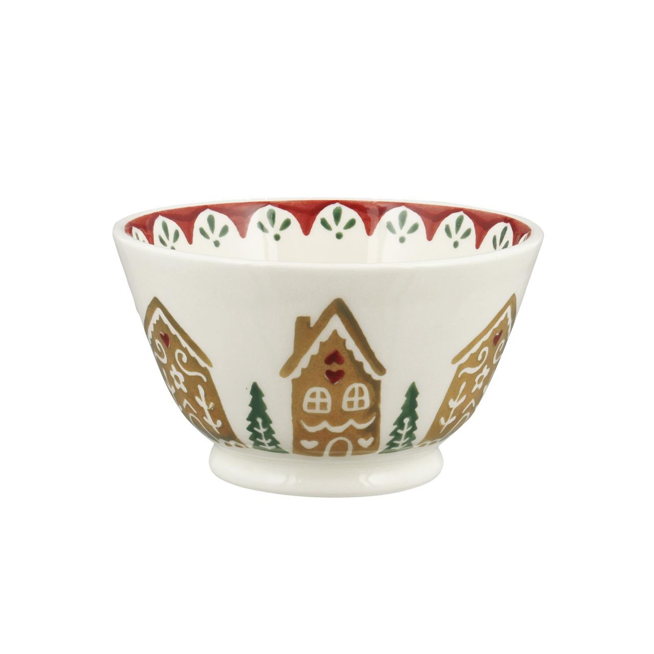 This Emma Bridgewater serving piece features a detailed, festive design perfect for the holiday season. Crafted from durable ceramic, this small bowl showcases a charming gingerbread house pattern across its surface. It brings a warm, traditional aesthetic to any seasonal display, functioning excellently as a unique decorative bowl.