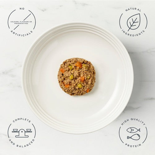 • A complete and balanced rustic style dog food pate for daily feeding.