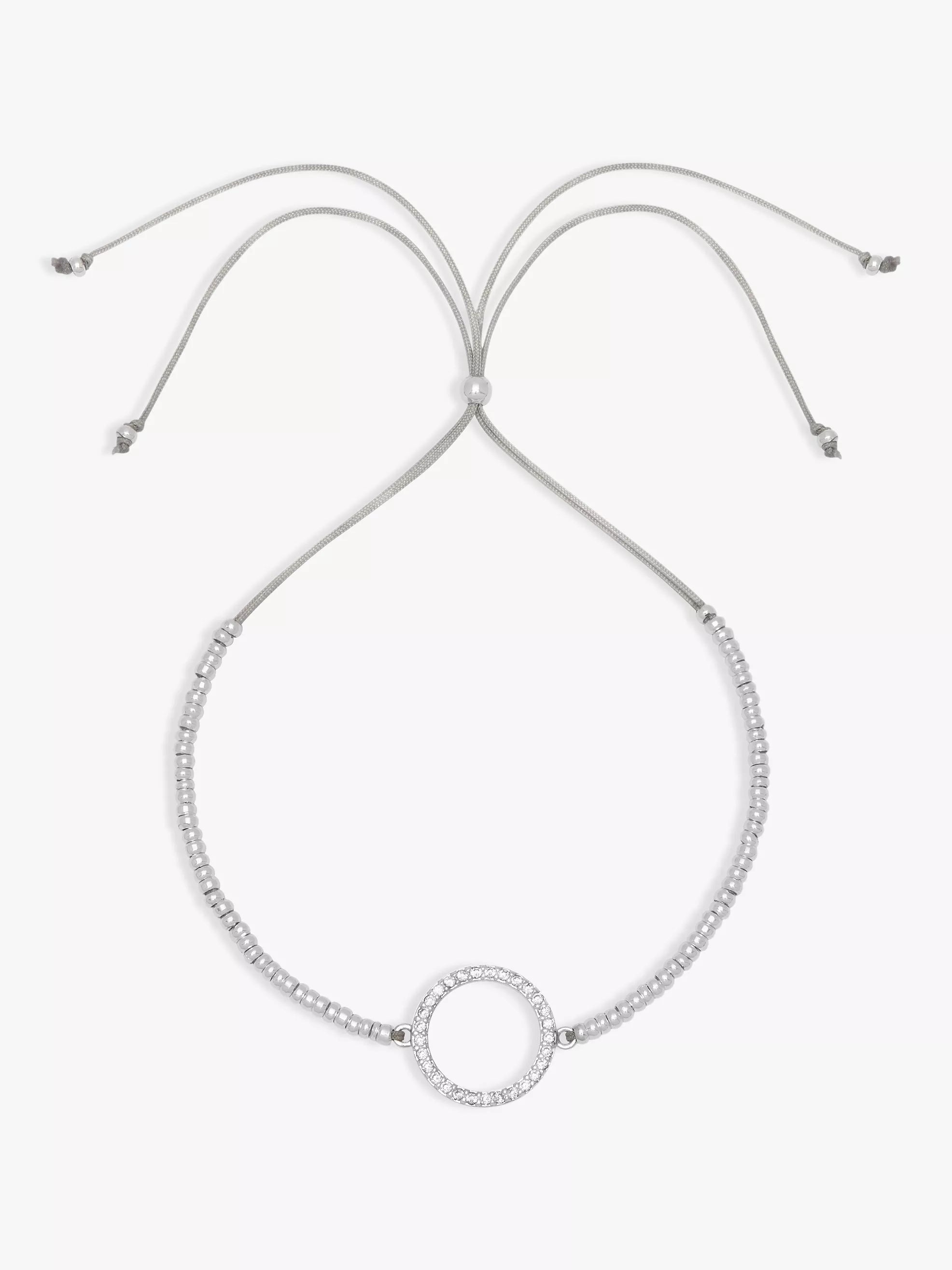 With an adjustable soft cord, the bracelet combines smooth beads and sparkling cubic zirconia in an effortless design.