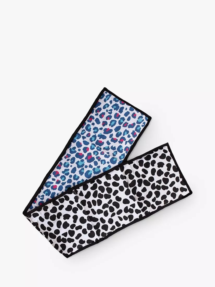 This sensory strip provides perfect visual stimulation for the pram and tummy time. This versatile product's reversible prints have been designed with science to provide the perfect visual experience for babies. It features a dalmatian print (newborn-4 months) and a blue leopard print (5+ months) in soft organic cotton with a comfy padded fill. Simply attach securely around the pram bassinet, stand up for happy tummy time or you can even stand it around the changing mat for less squirmy nappy changes. The strip comes beautifully presented to make the perfect gift too.