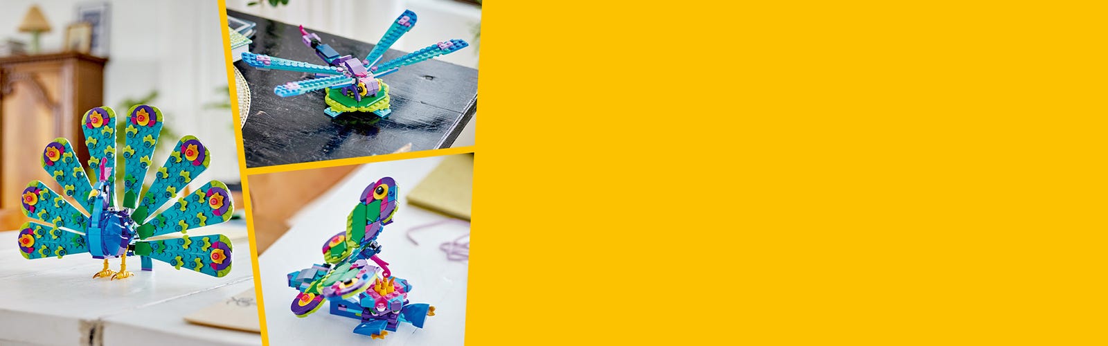 This LEGO Creator 3in1 set gives kids 3 different build-and-play experiences with the same set of bricks. They can build a peacock figurine toy, rebuild it into a dragonfly toy with posable wings and tail on a lily-pad stand, or a colourful butterfly toy with posable wings. All 3 playable models make for attractive display items on a shelf or bedside table.
