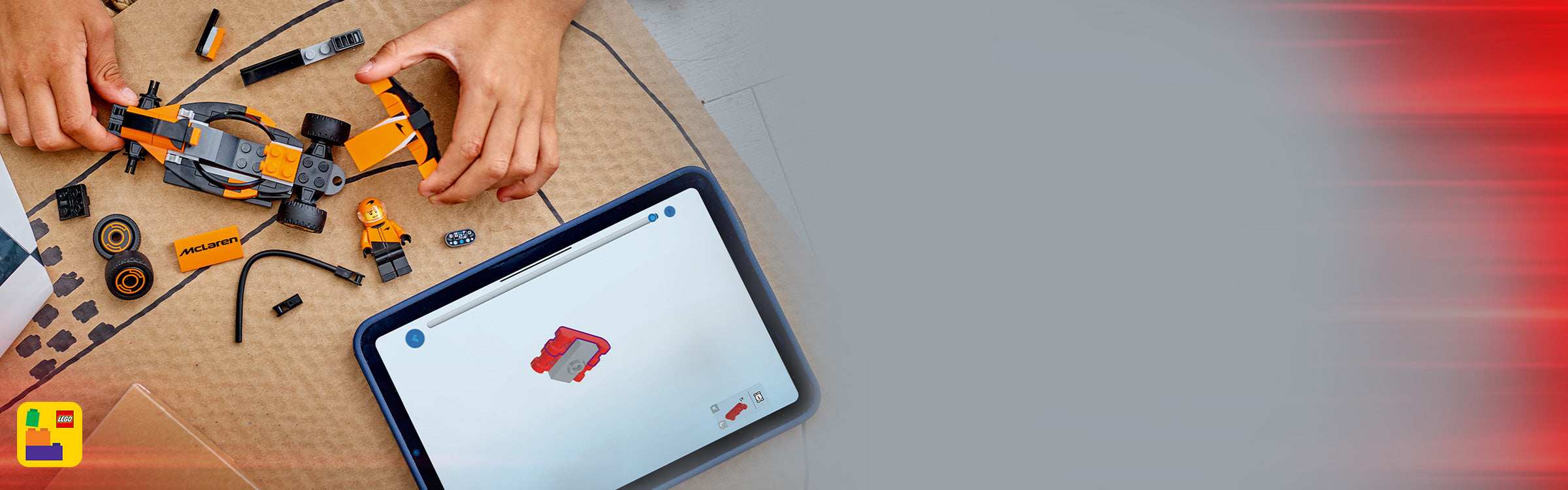 This LEGO F1 model includes a step-by-step printed construction guide and digital instructions in the LEGO Builder app. Here, kids can zoom in and rotate models in 3D, track their progress as they build, and explore and save other playsets.